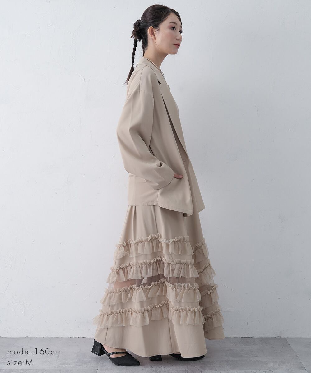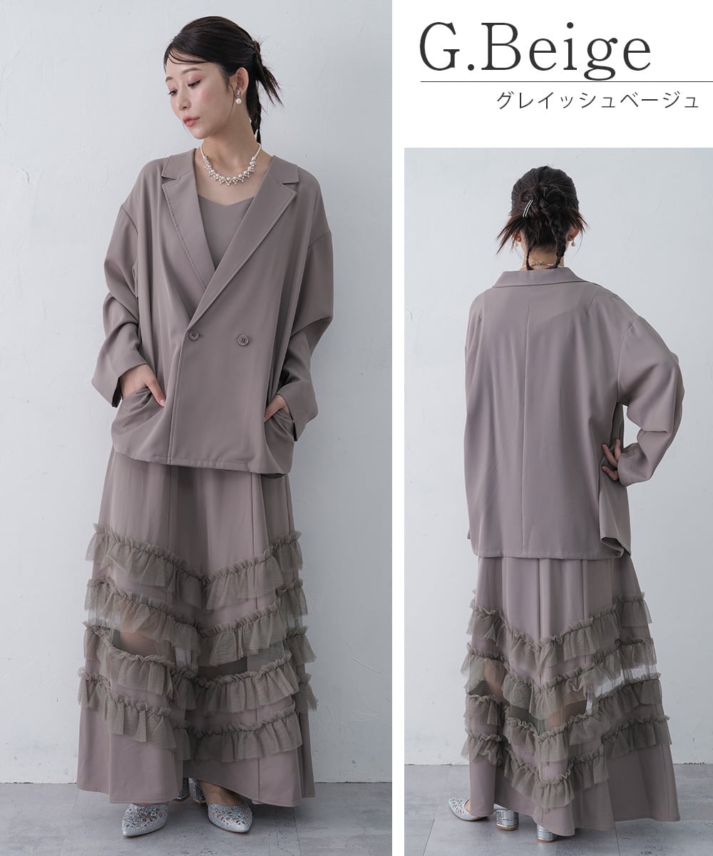 結婚式 ドレス パーティードレス ワンピース ジャケット 2点セット オケージョンドレス 重ね着 レディース 秋 オケージョン 個性的 フリル 体型隠し 結婚式ドレス お呼ばれ 袖あり 長袖 ロング シアー S M L 黒 ベージュ as934 | AUNI_BELLES