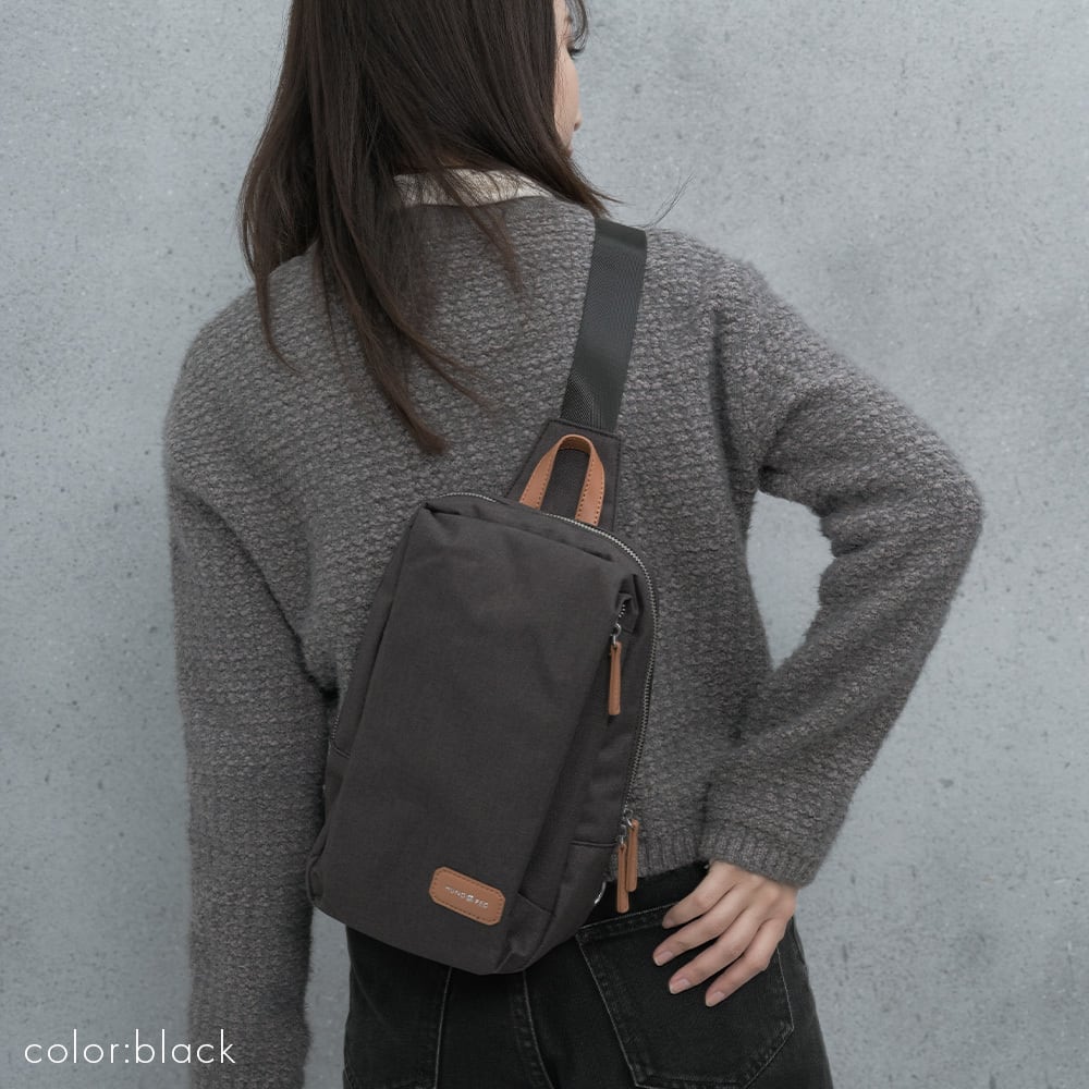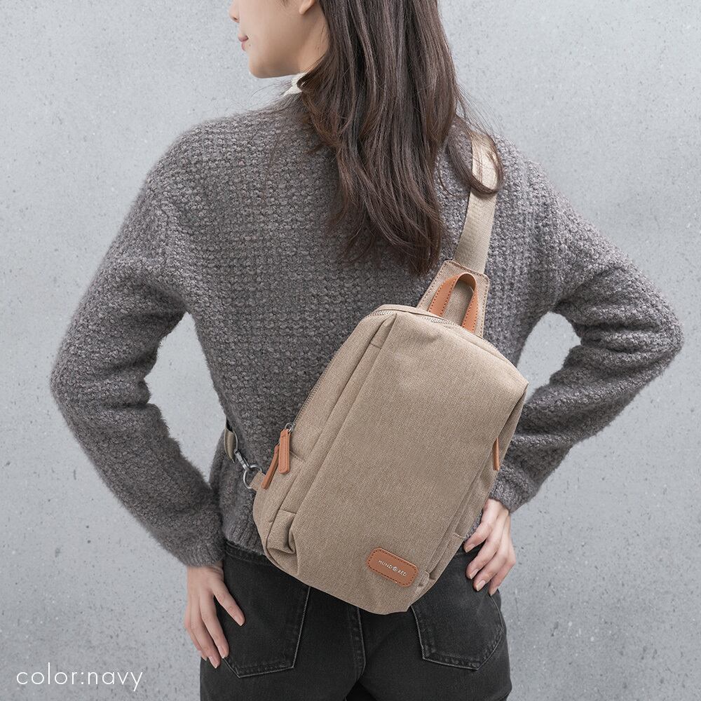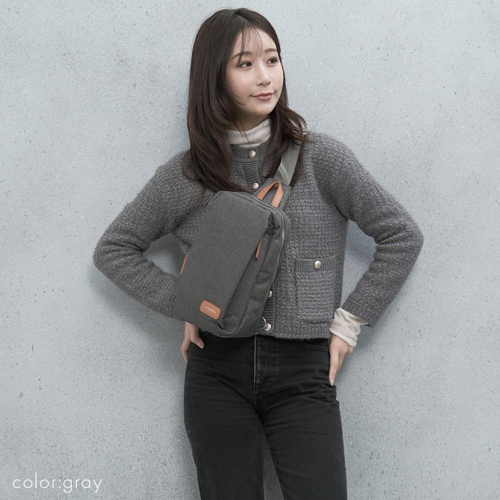 カジュアルからきれいめまで幅広いコーデにマッチするボディバッグ。