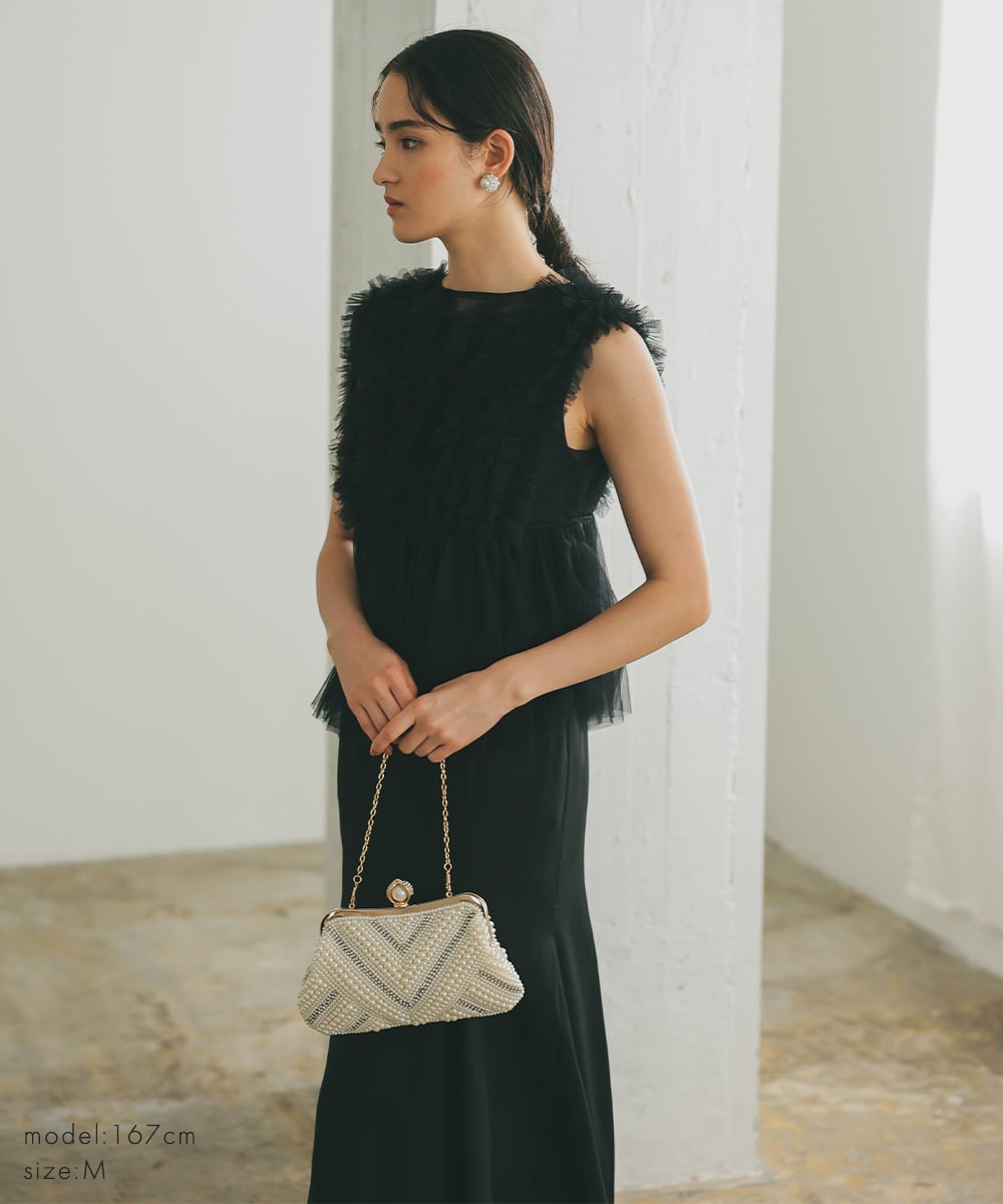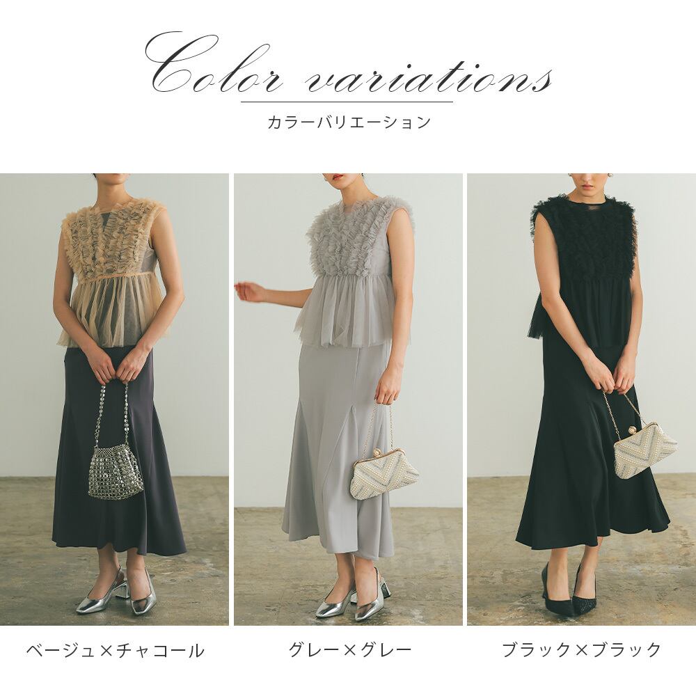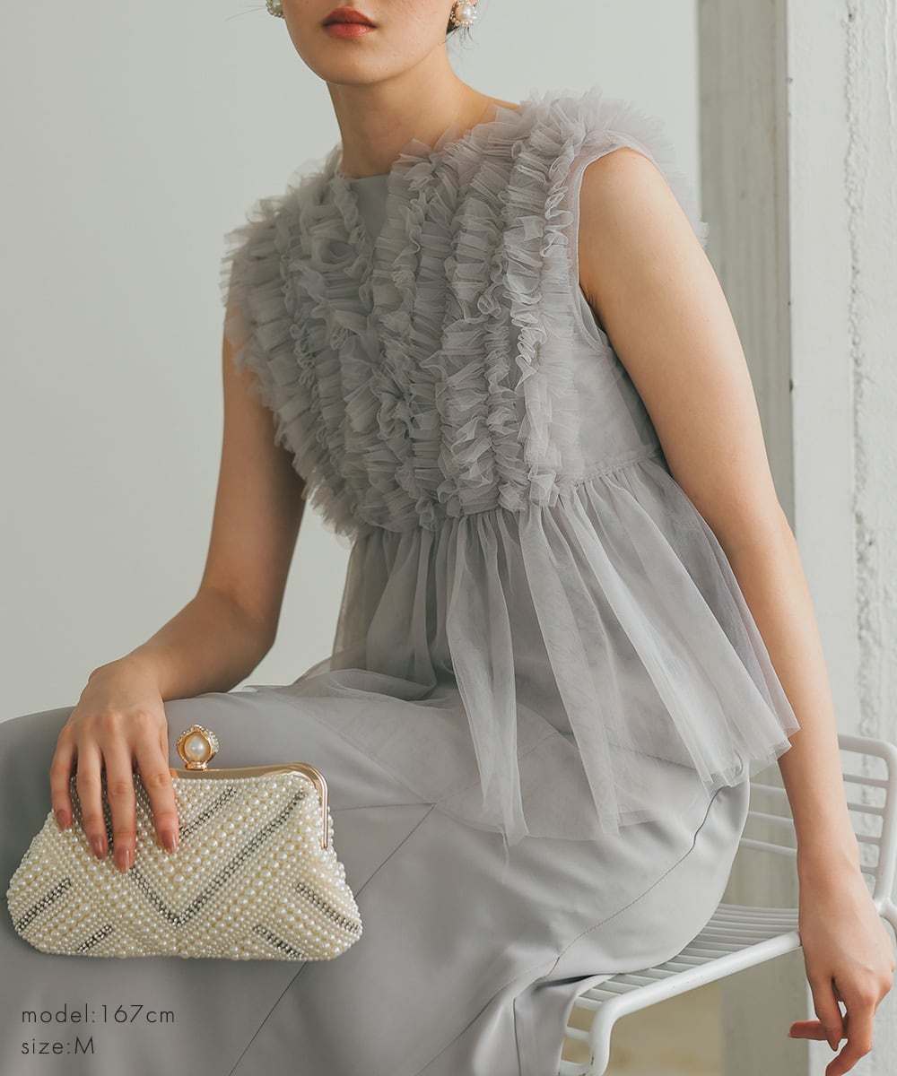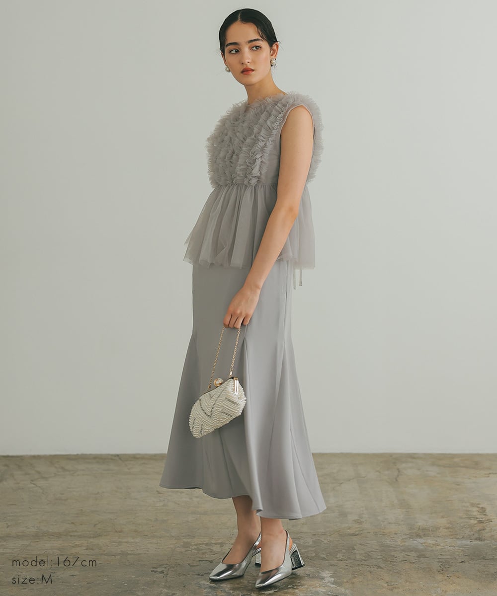 胸元はギャザーを寄せたチュールを使用しているため、ボリューム感がアップして華やかに見せられます。