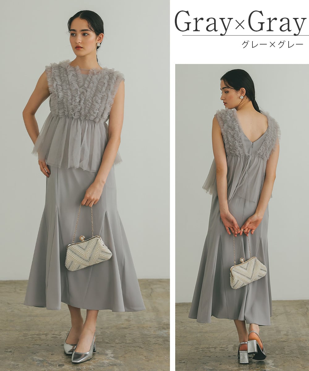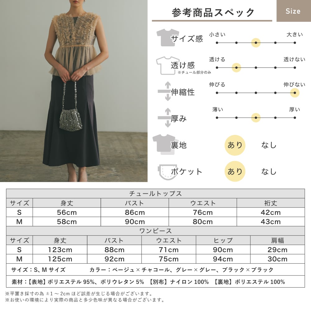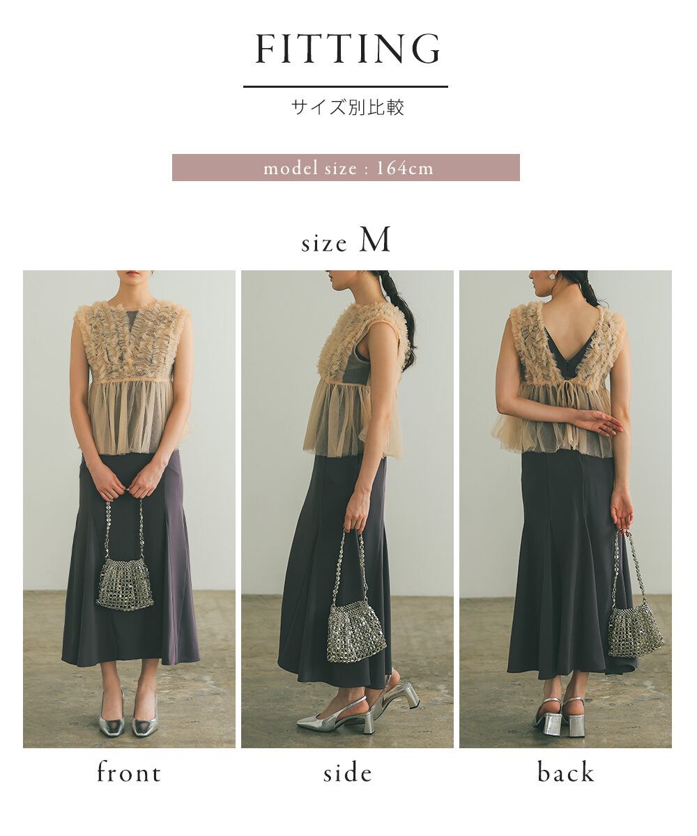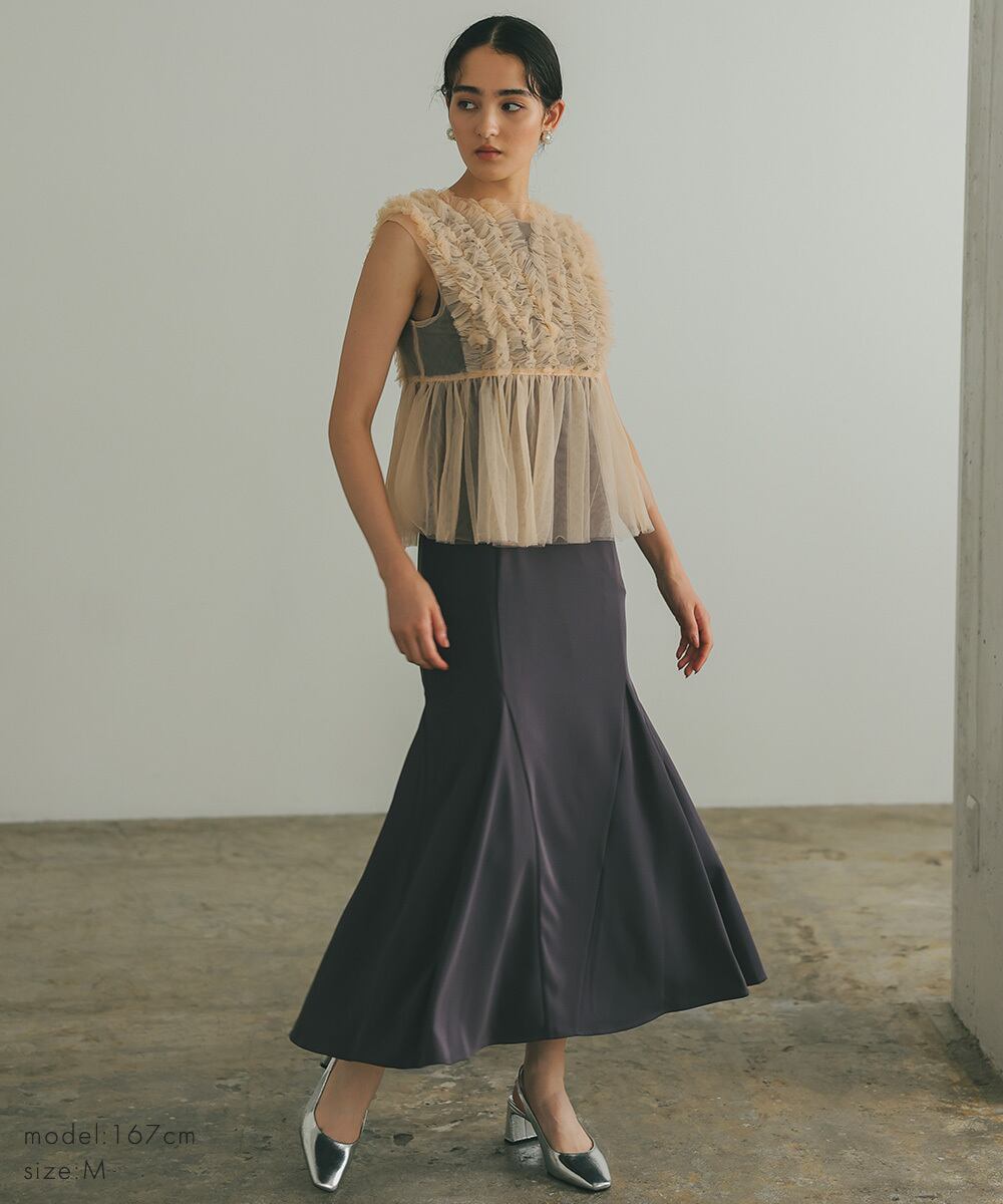 胸元はギャザーを寄せたチュールを使用しているため、ボリューム感がアップして華やかに見せられます。