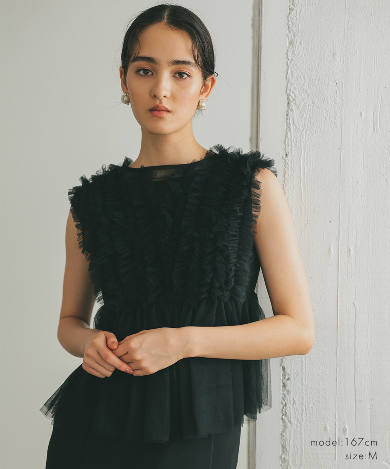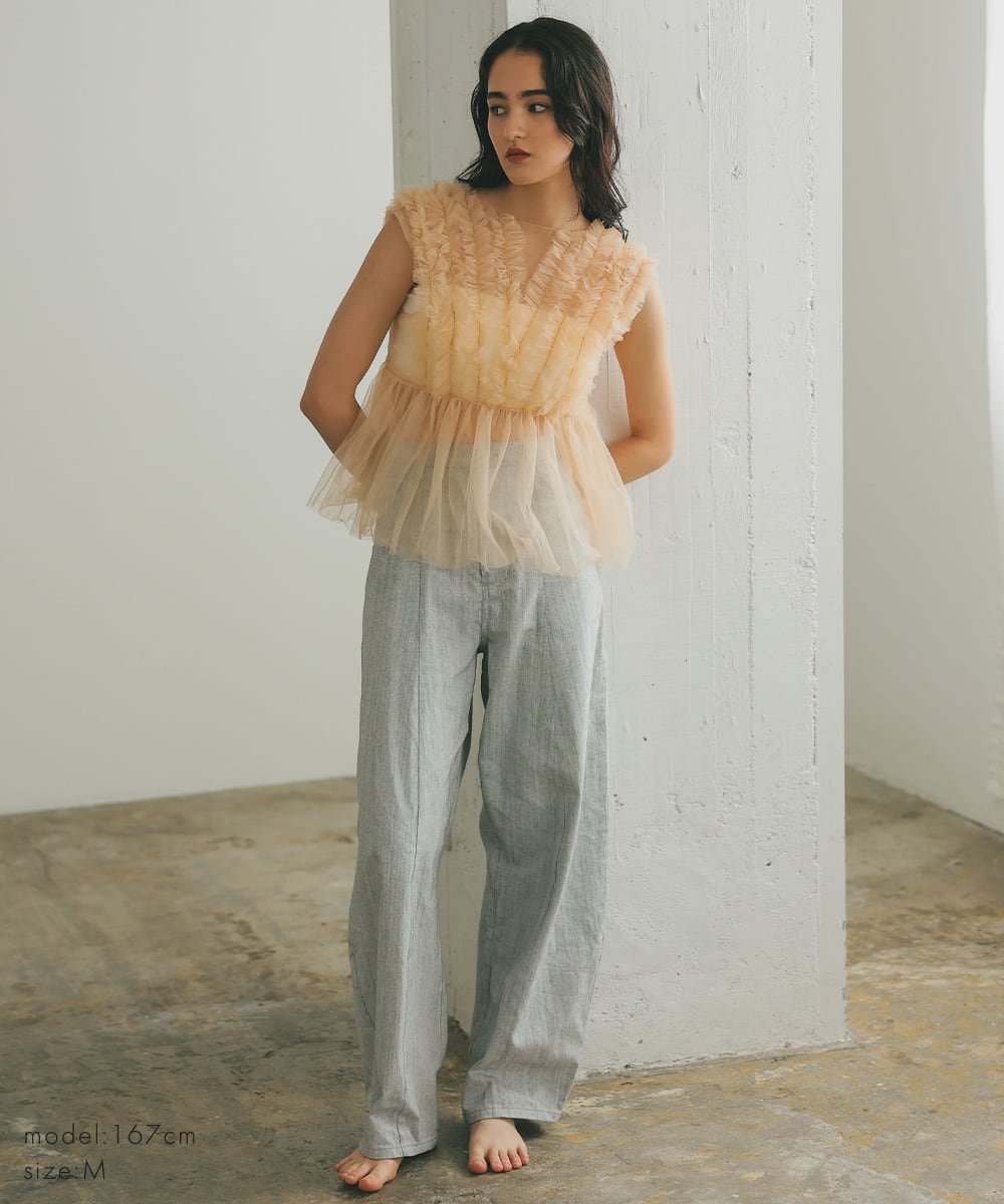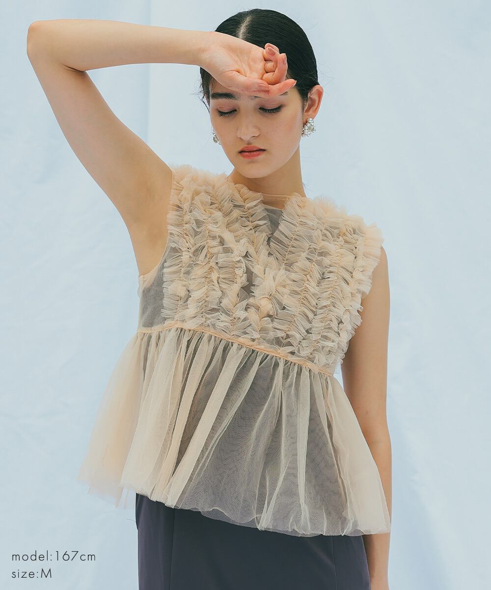 チュールトップスはカジュアルめのトップスと合わせていただいても