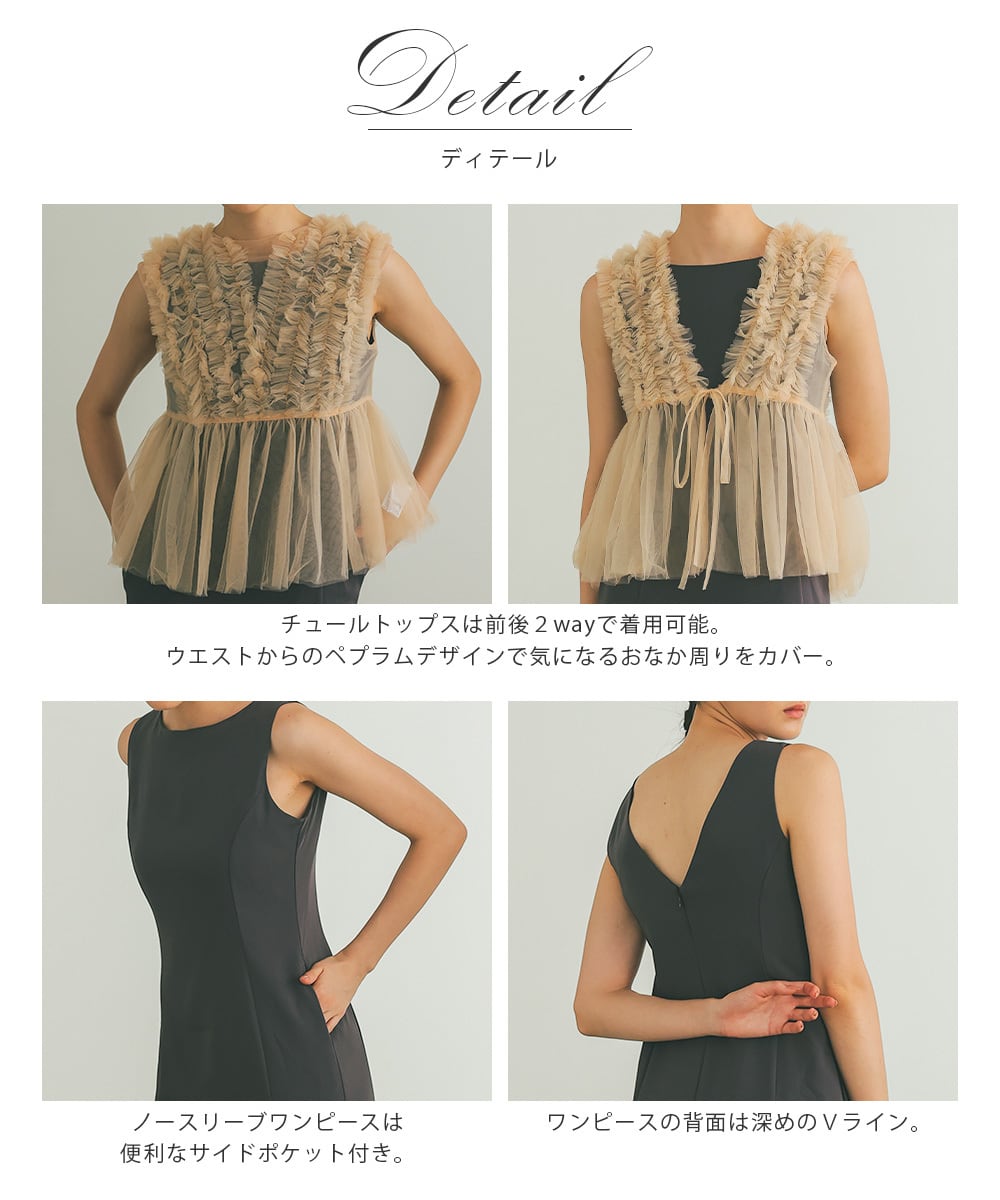 チュールトップスとドレスはアンサンブルになっているので別々に着ていただくことも可能です。