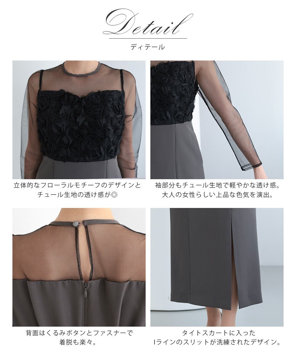 デコルテと袖に施されたシースルー(チュール)が、