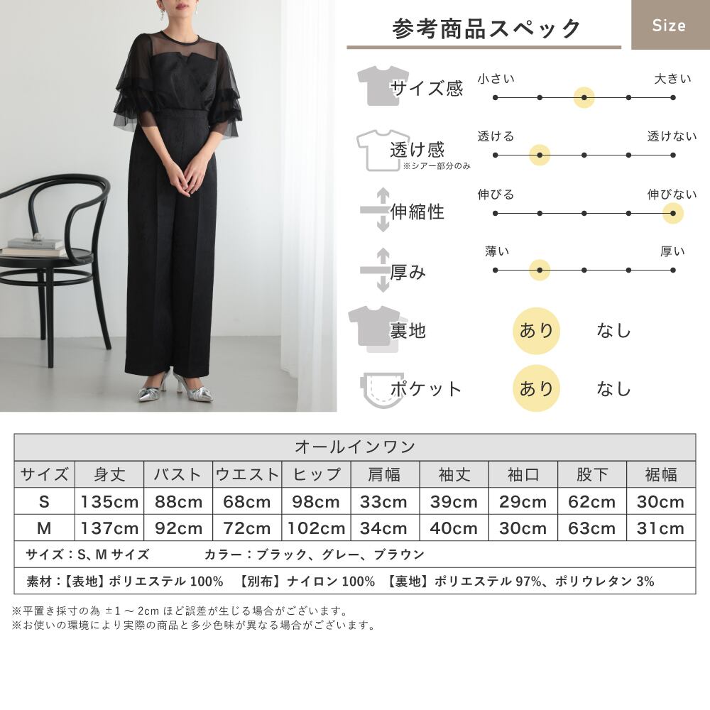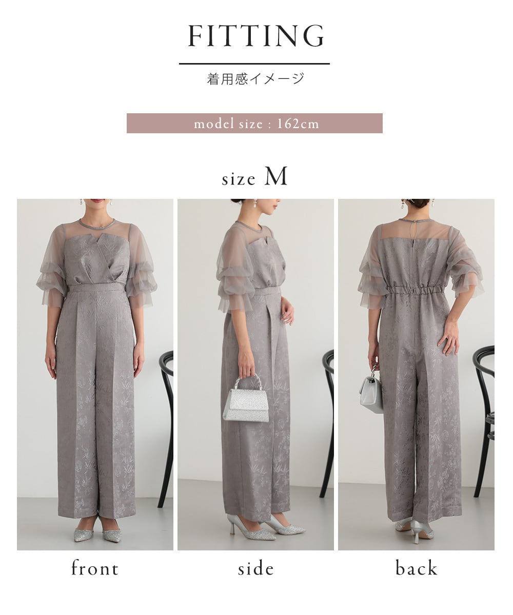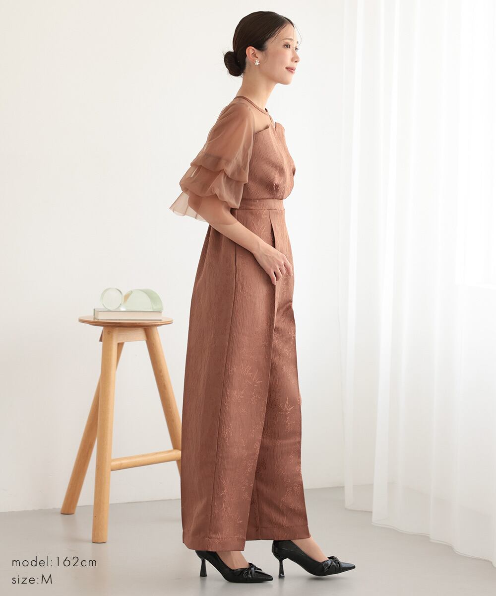 結婚式 ドレス パーティードレス パンツドレス オケージョンドレス レディース オケージョン オールインワン 体型カバー お呼ばれ 袖あり ロング ワイドパンツ ポケット付き ウエストゴム 黒 グレー ブラウン 325282 | AUNI_BELLES