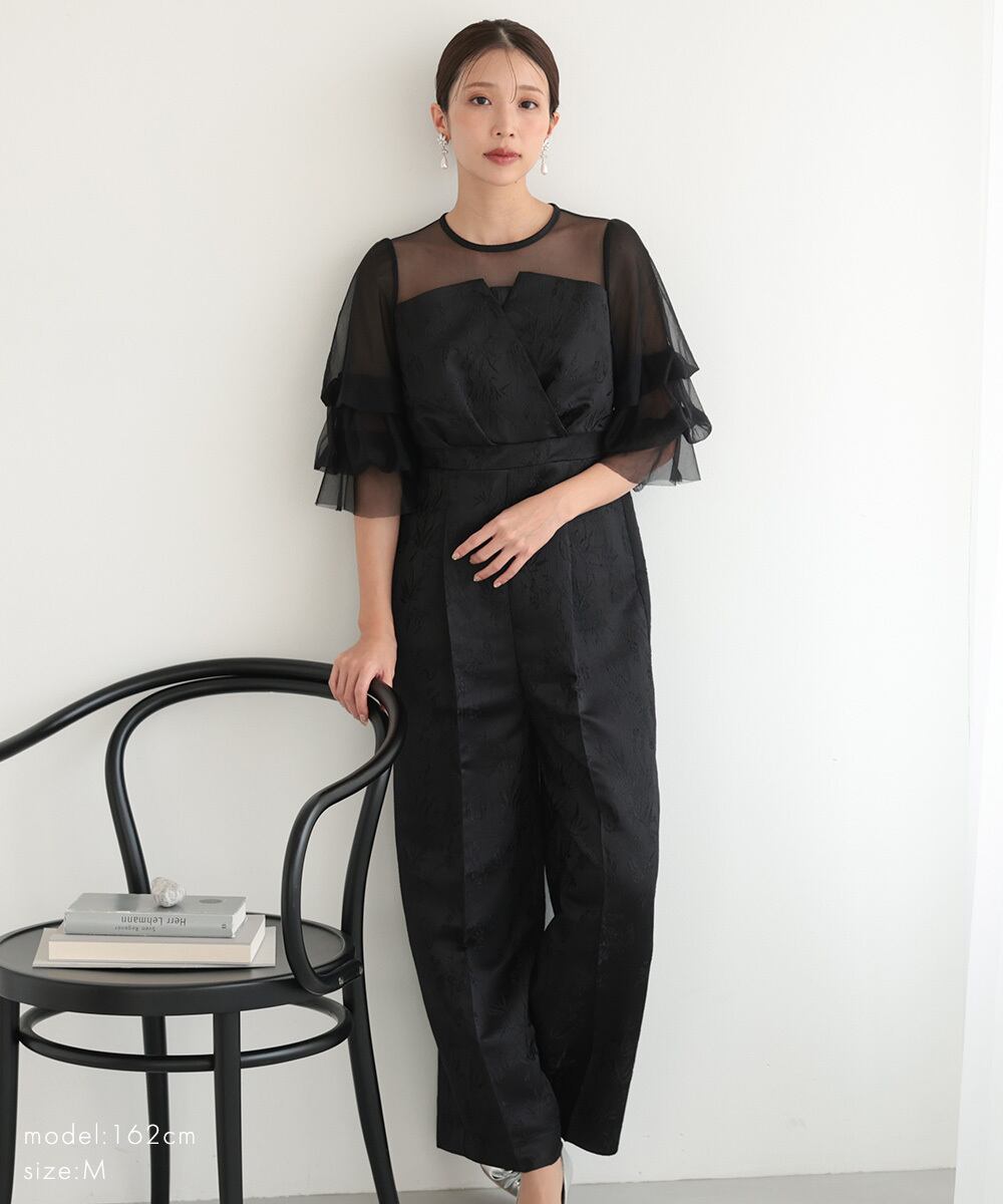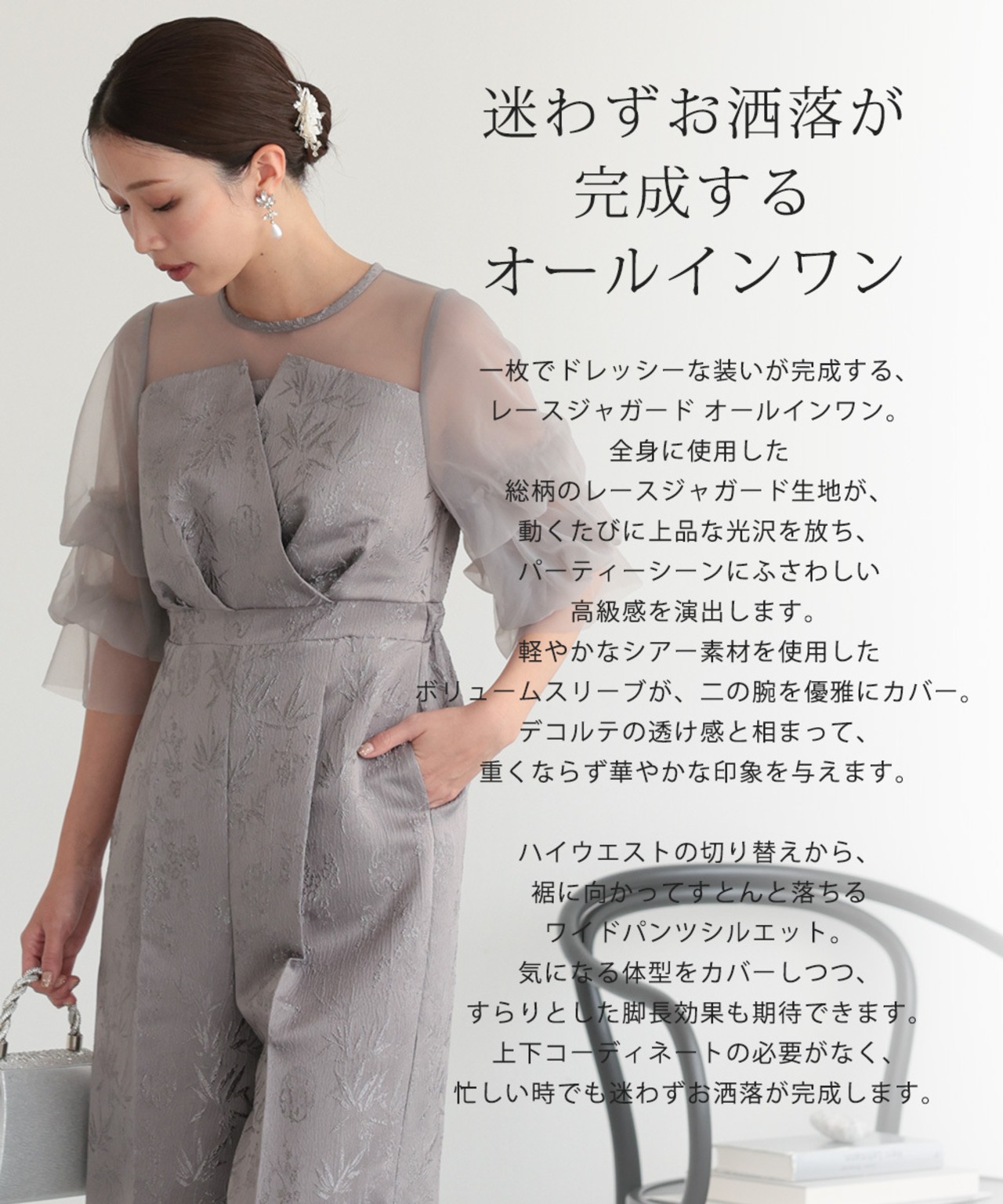 一枚でドレッシーな装いが完成する、レースジャガード オールインワン。
