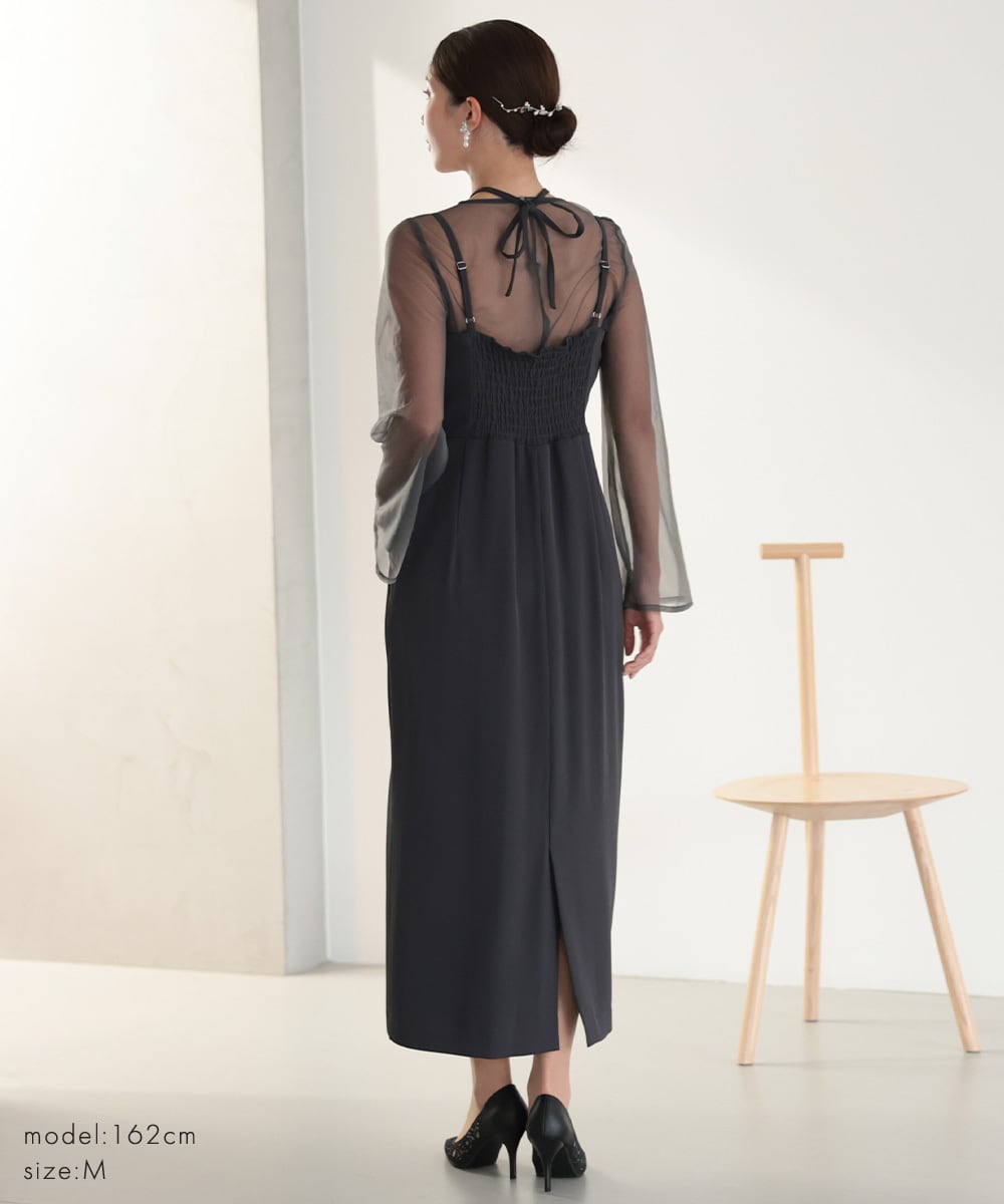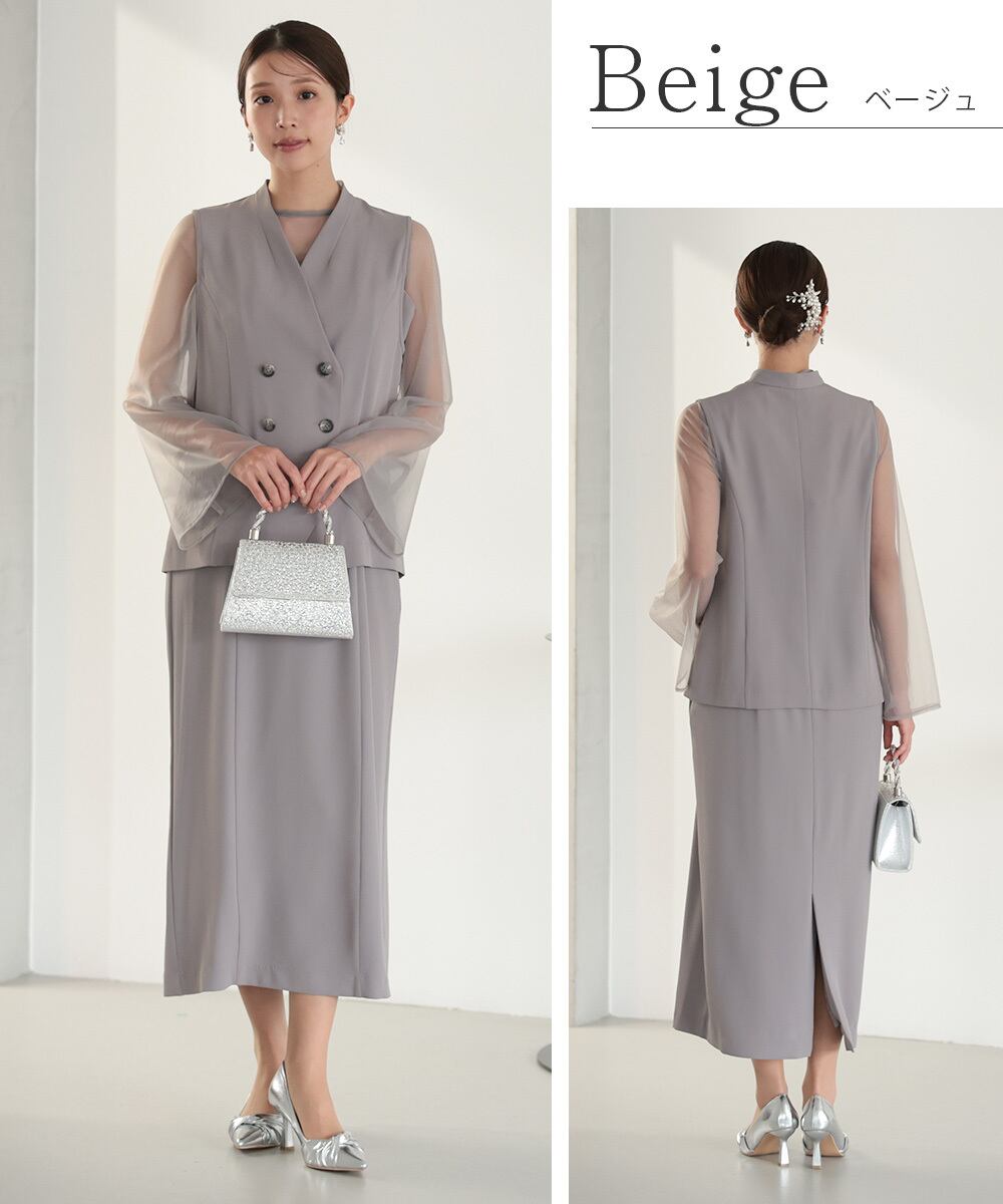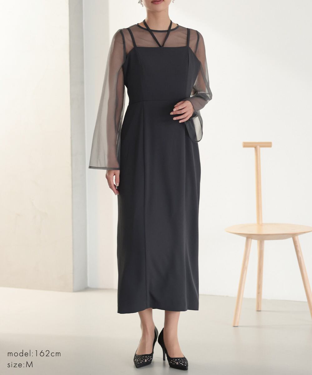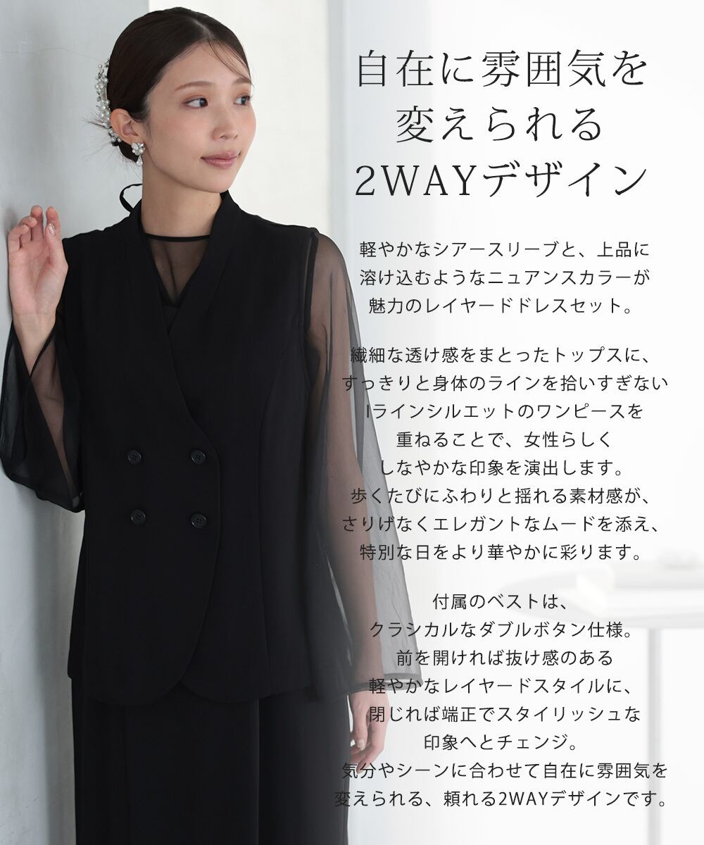 上品に溶け込むようなニュアンスカラーが魅力のレイヤードドレスセット。