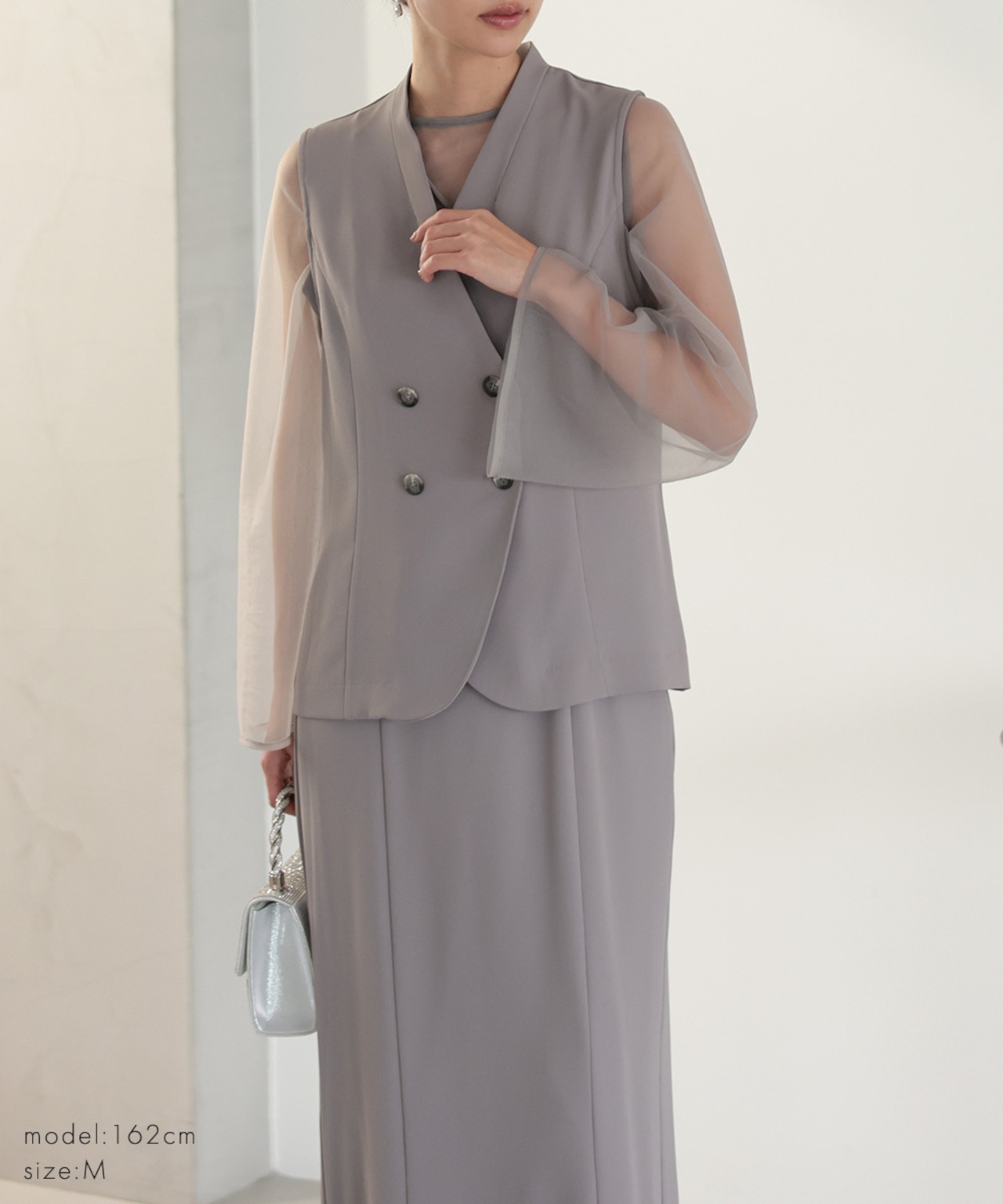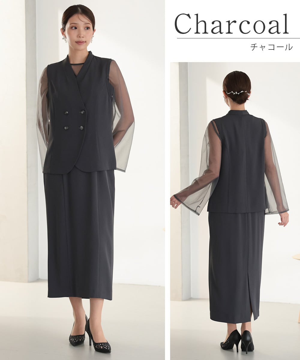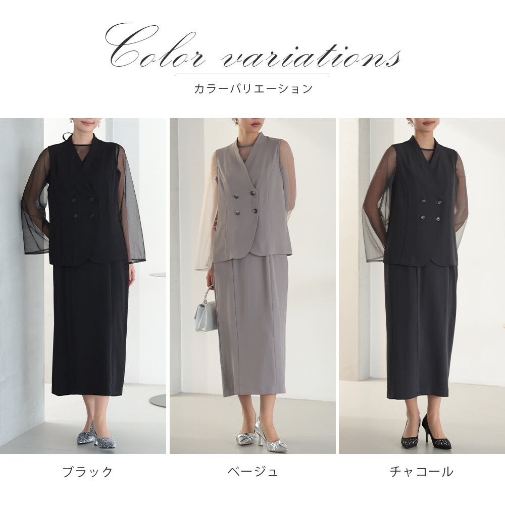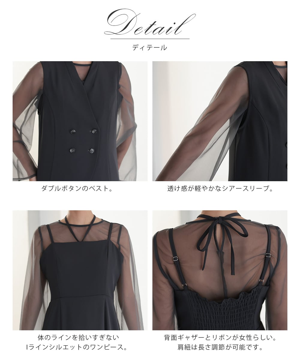 上品に溶け込むようなニュアンスカラーが魅力のレイヤードドレスセット。