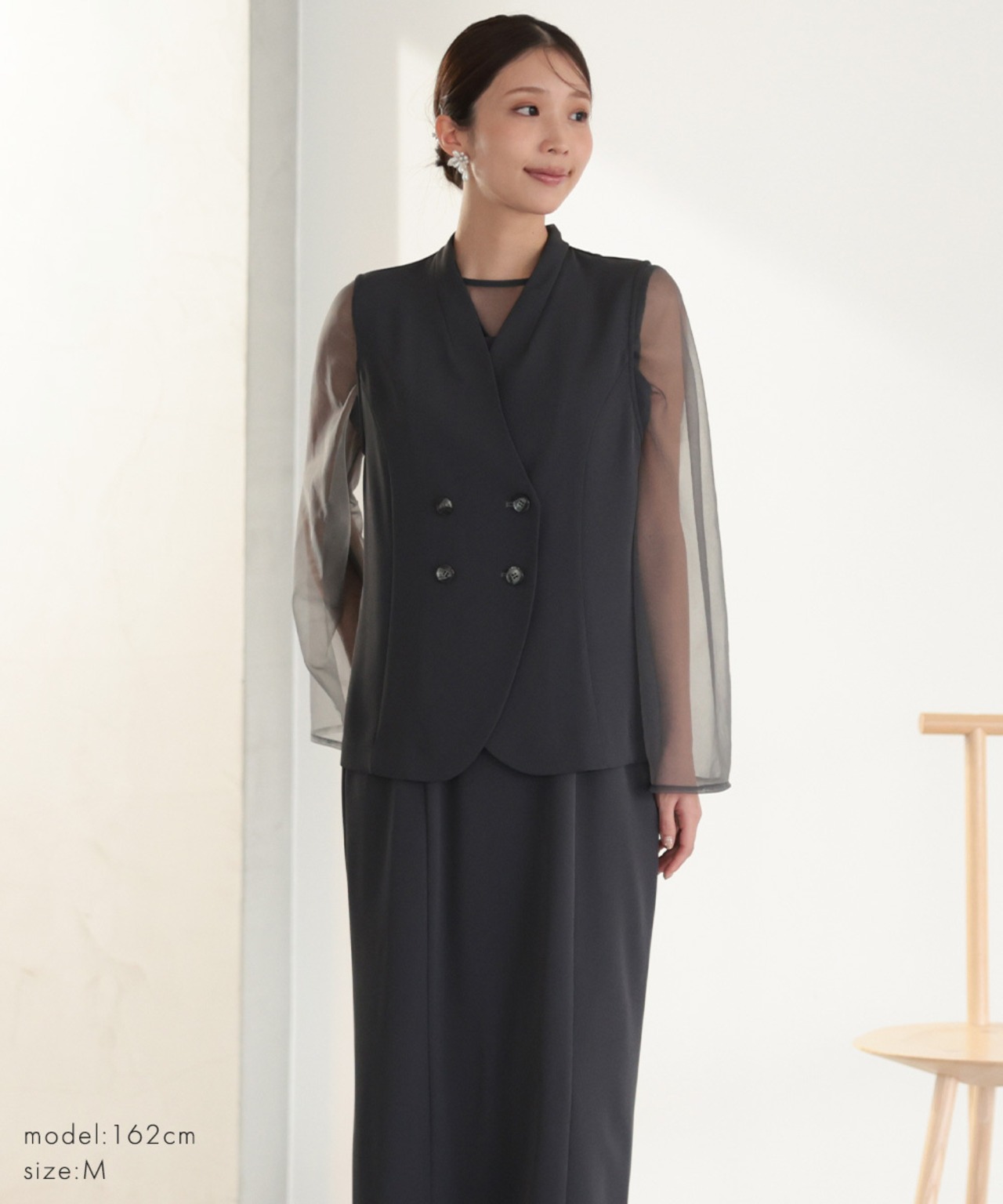 インナーや小物次第でデイリーにも着回せる、汎用性の高い一着です。