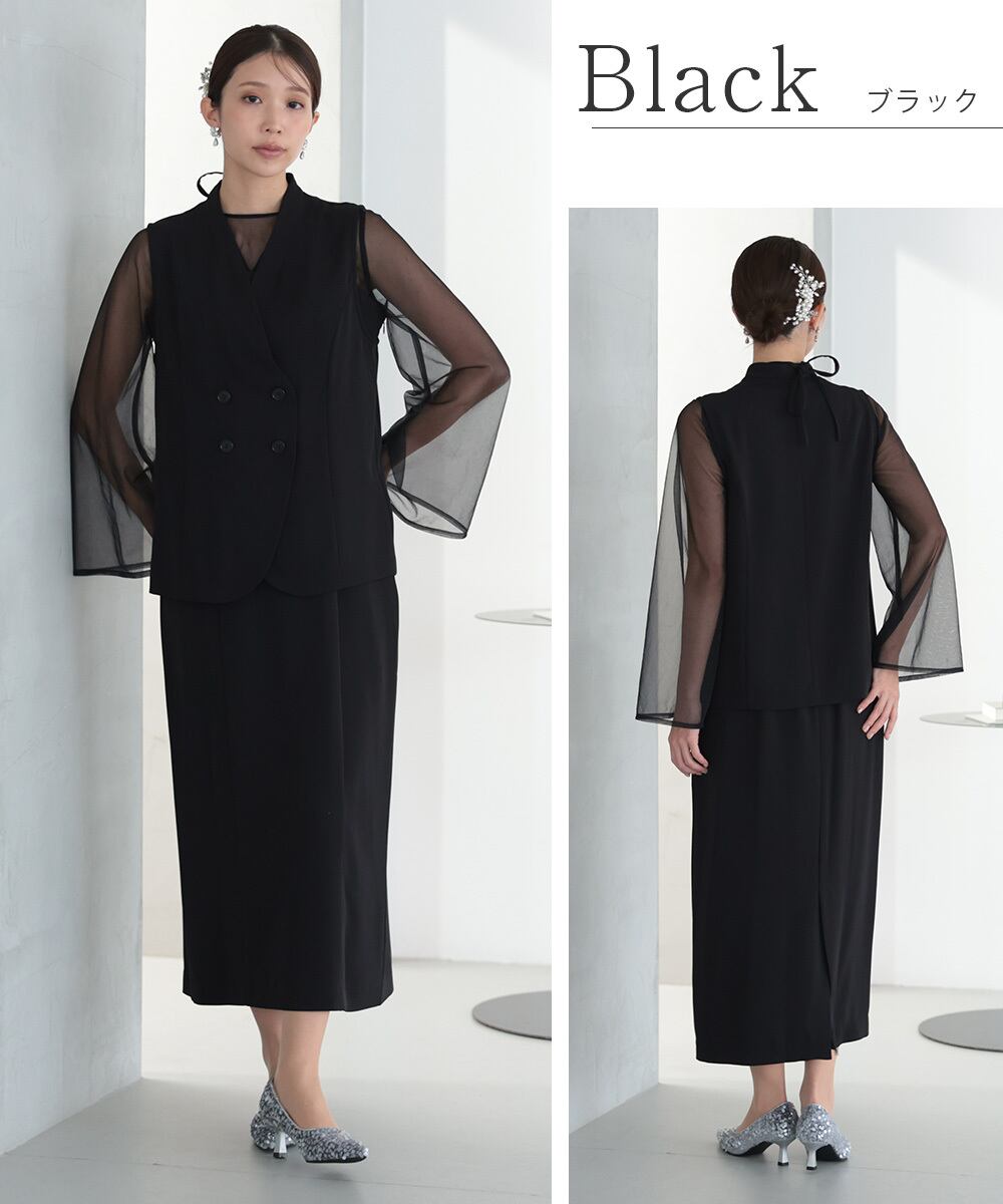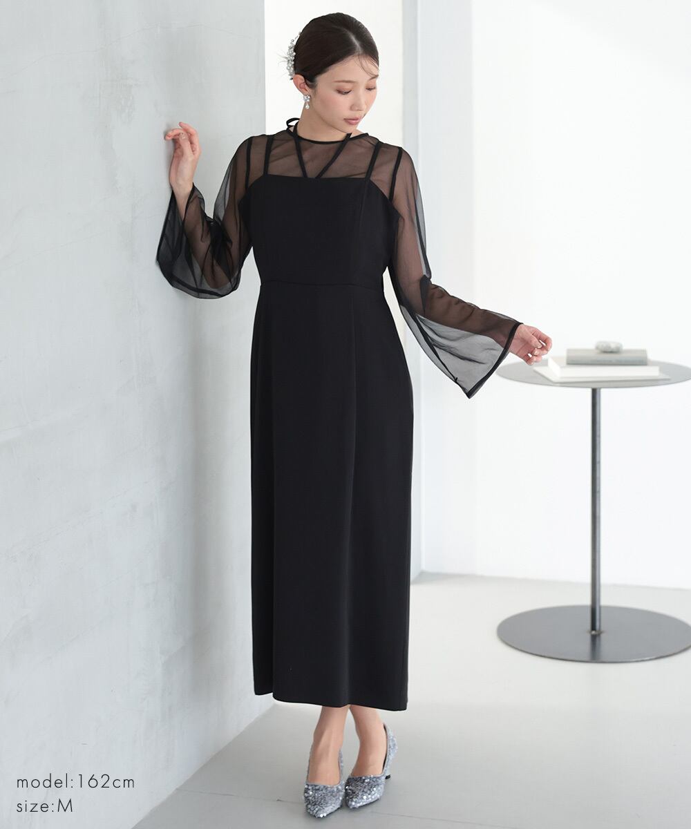 結婚式 ドレス パーティードレス ボレロ トップス 3点セット オケージョンドレス ワンピース 重ね着 レディース 秋 オケージョン チュール 体型隠し 結婚式ドレス お呼ばれ 袖あり 長袖 ロング 大人可愛い シアー S M 325283 | AUNI_BELLES