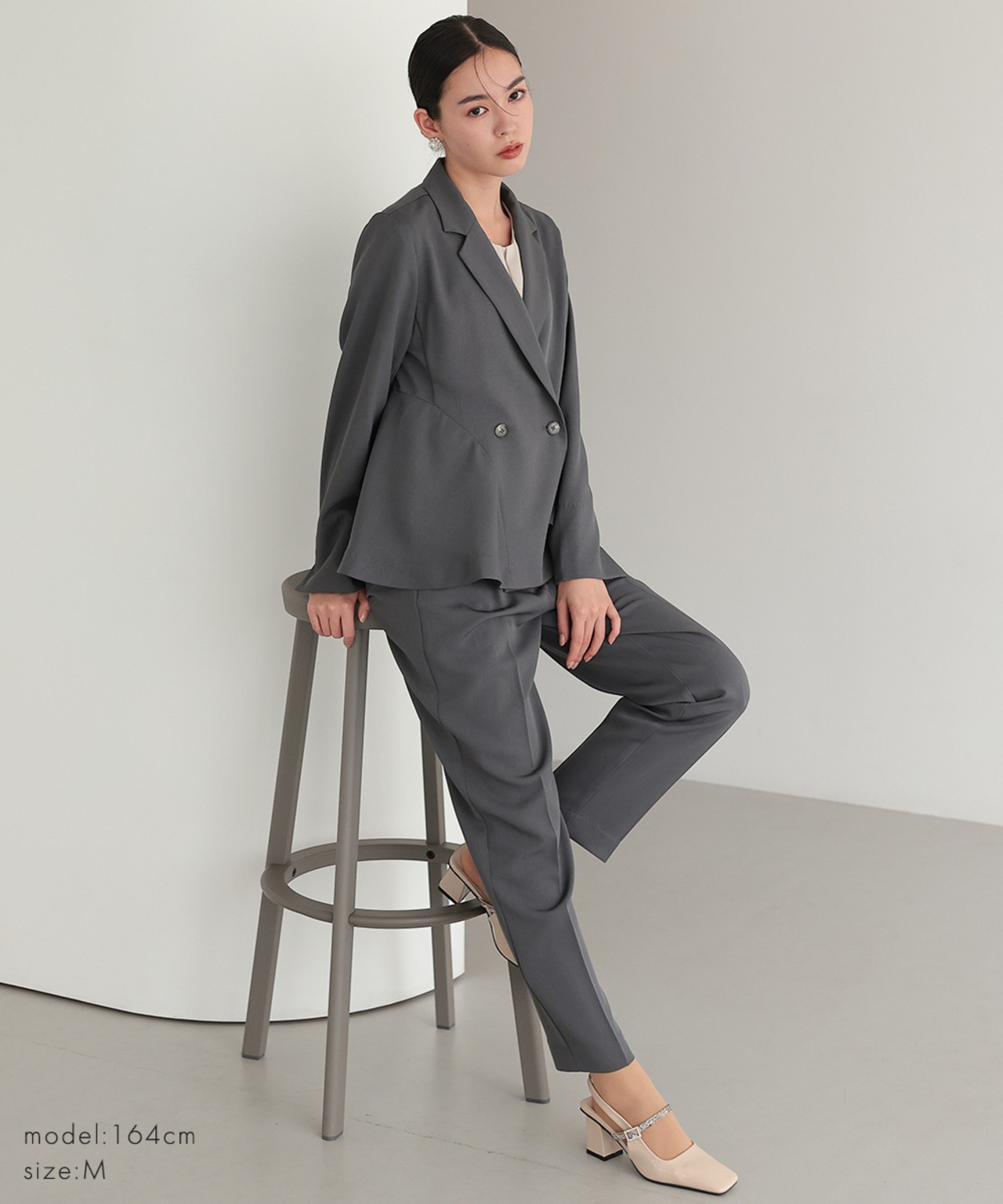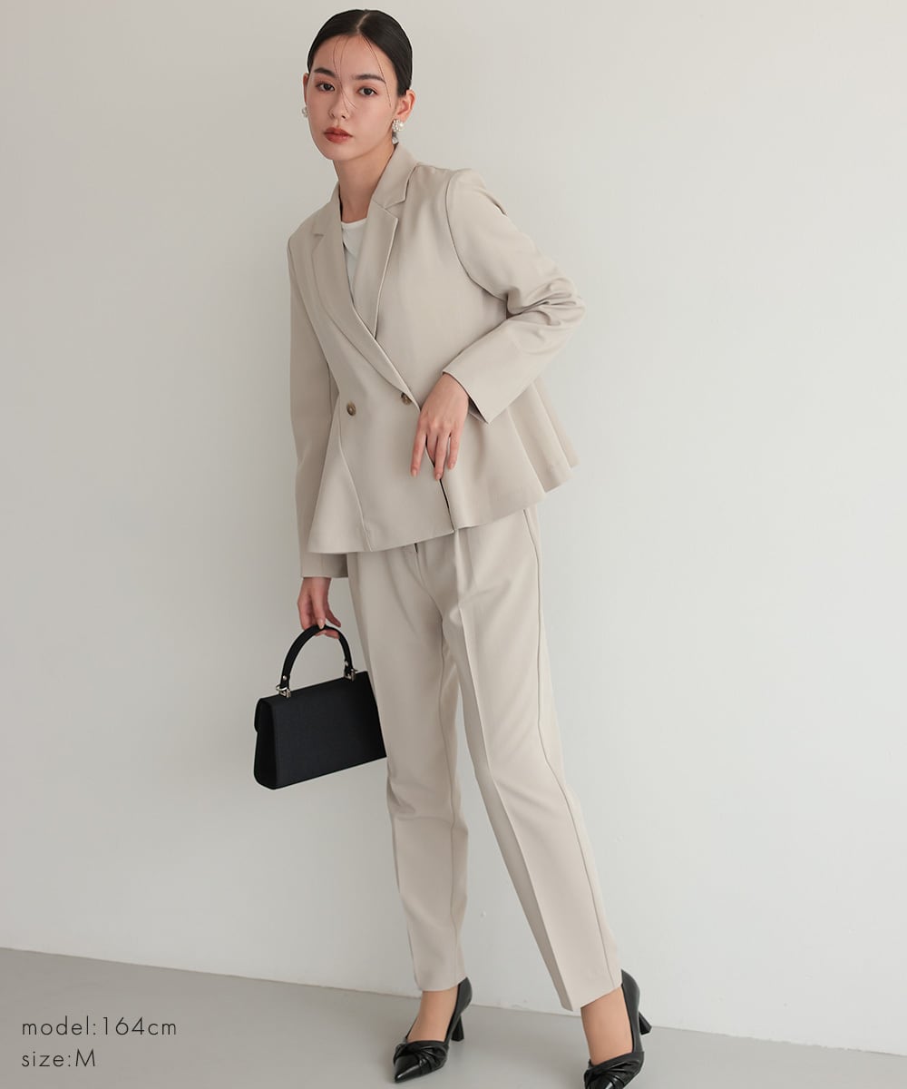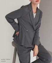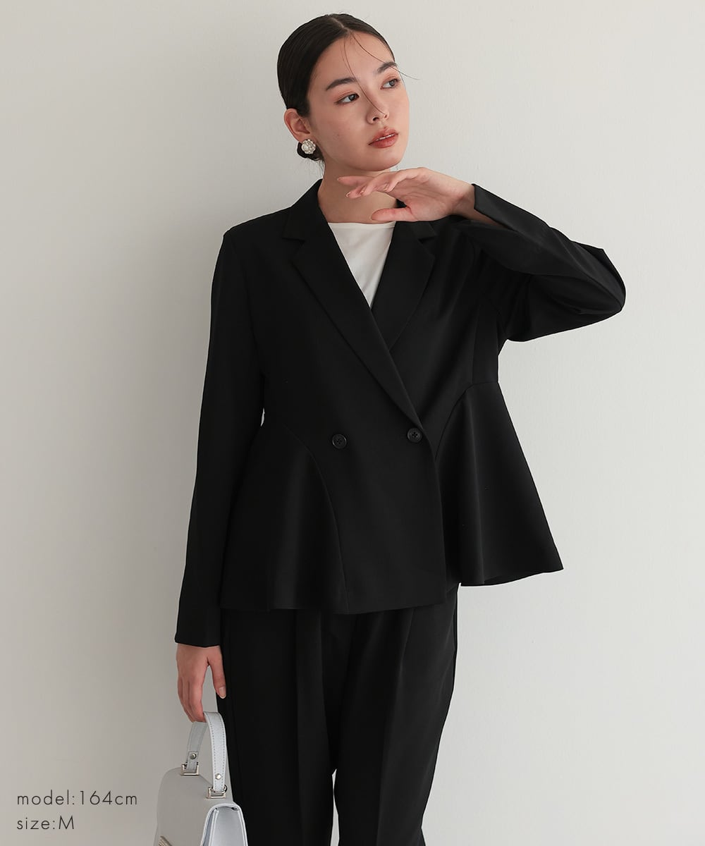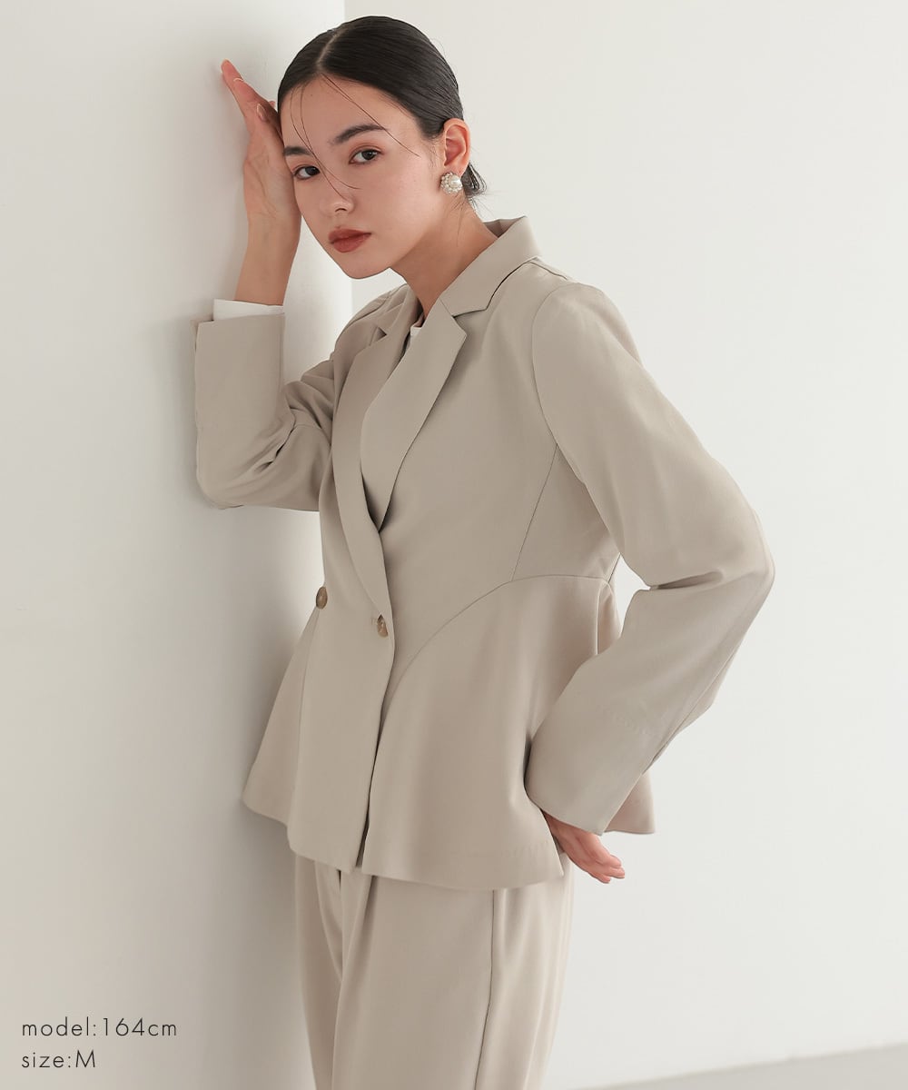 ダブルボタンのジャケットは、ほどよいウエストシェイプで