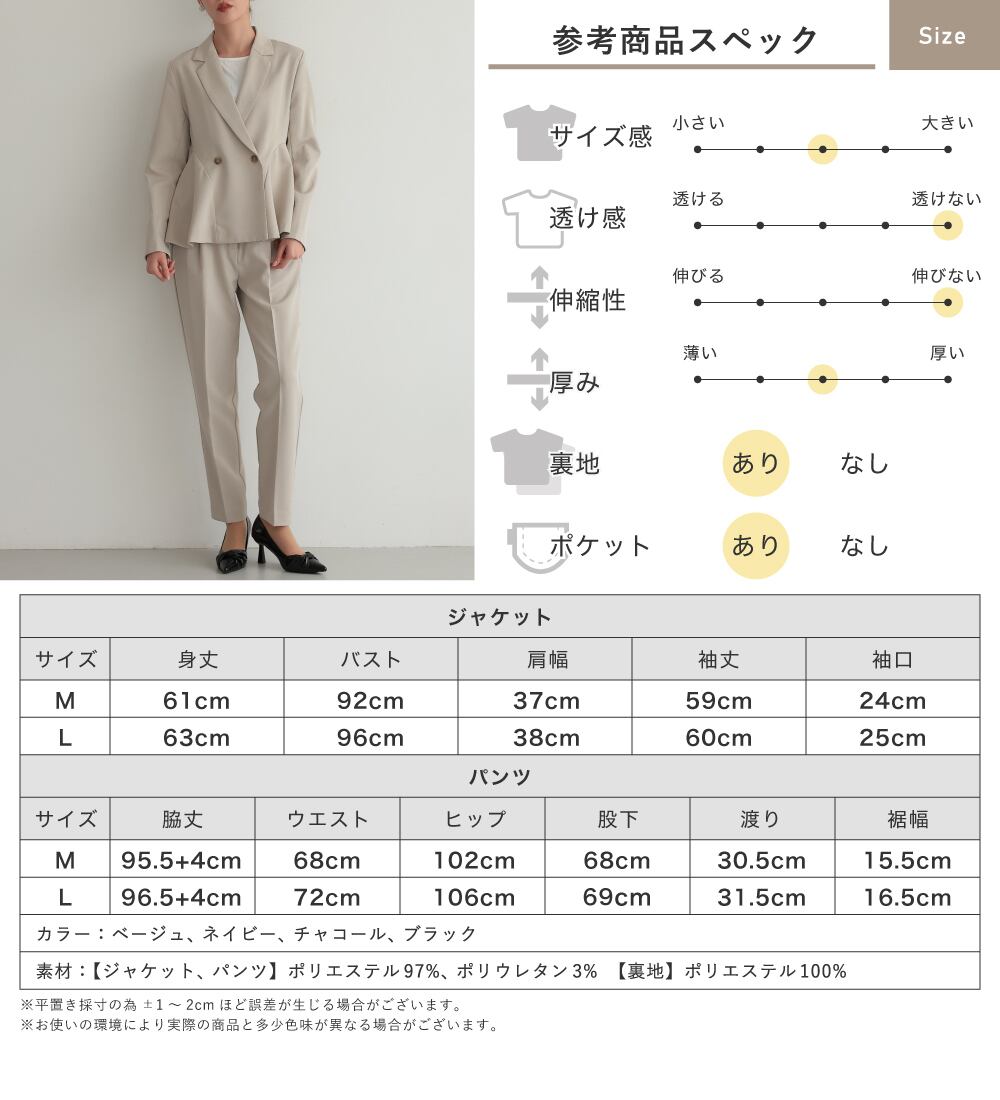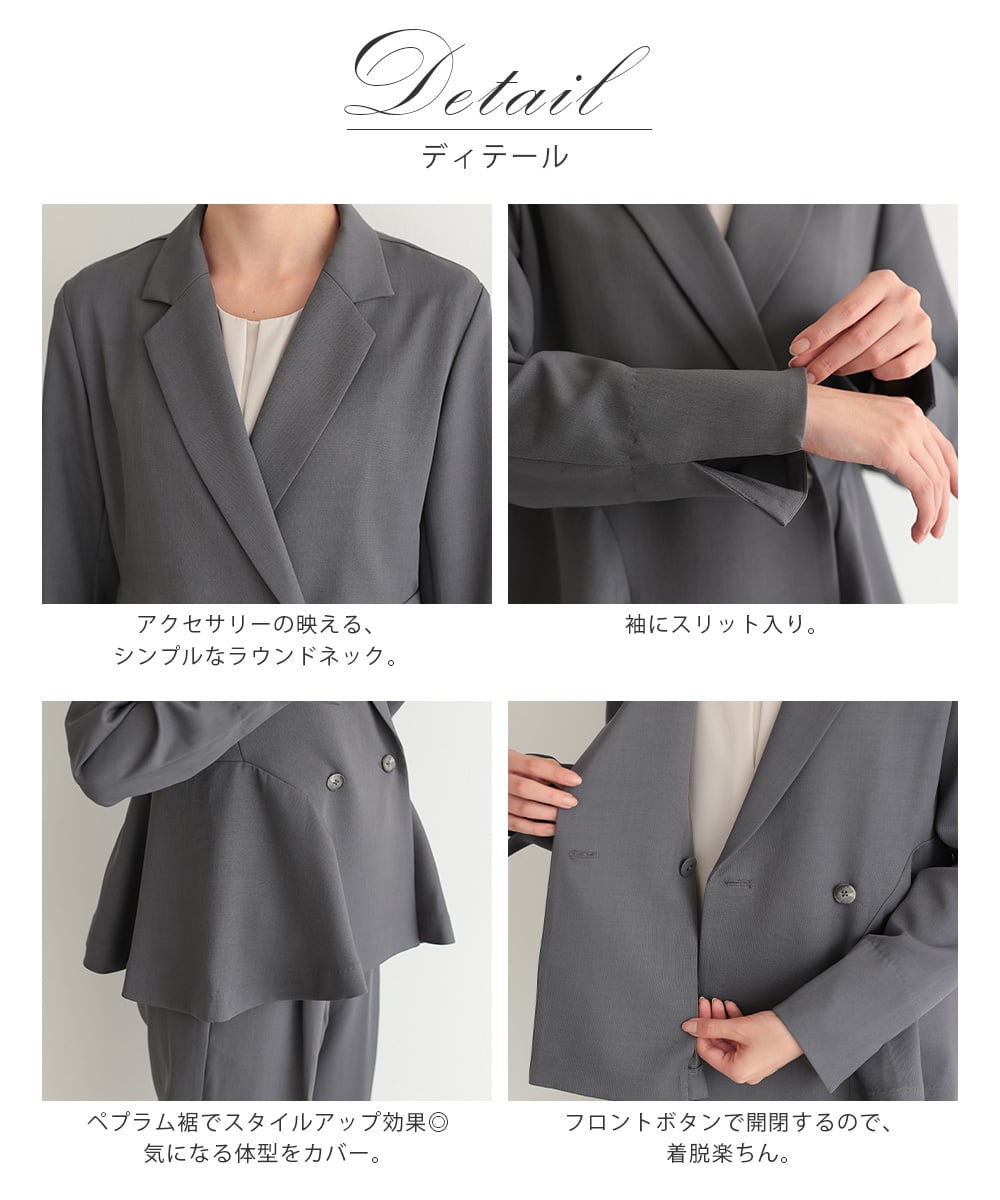スタイルアップ効果を発揮し、きちんと感の中にも柔らかさをプラス。