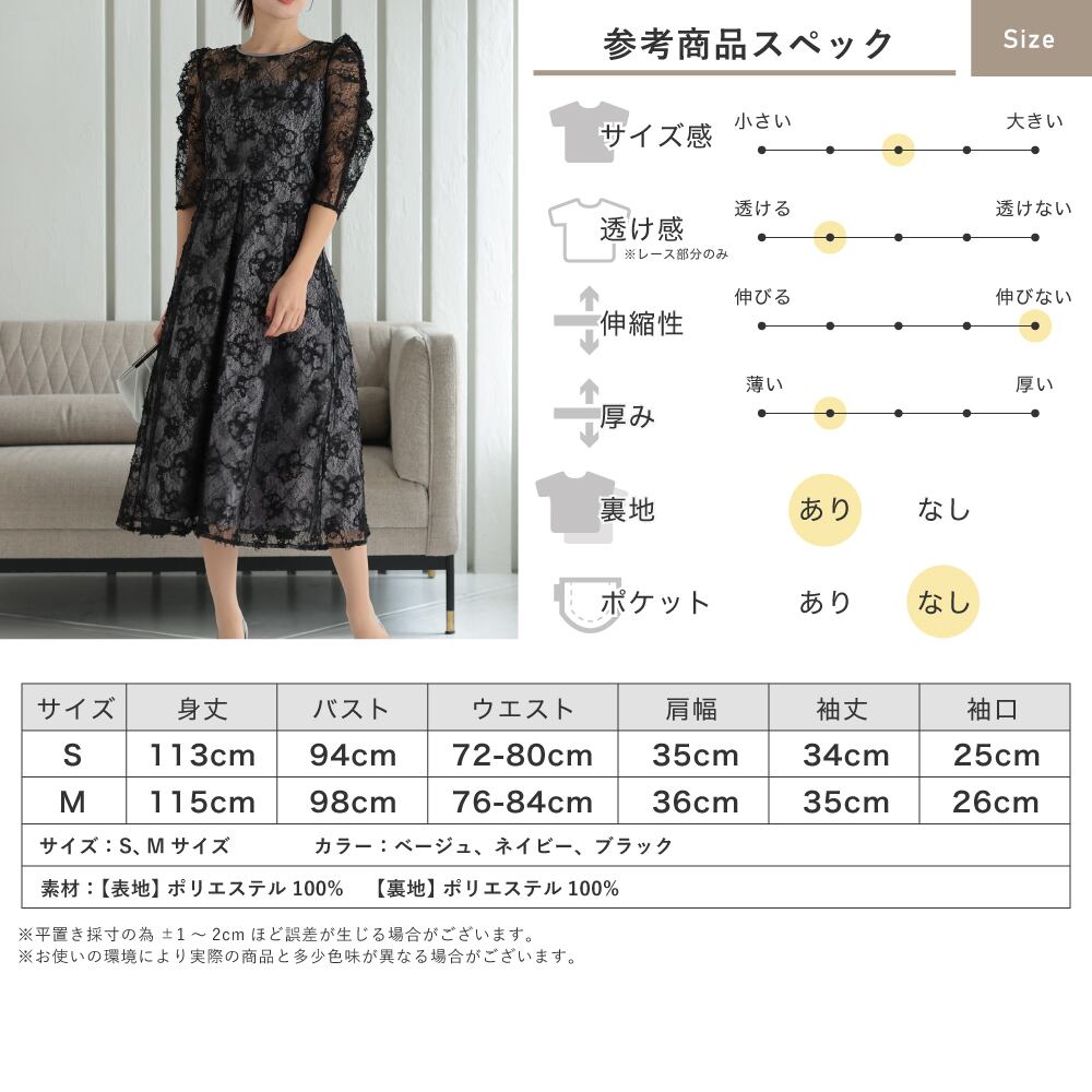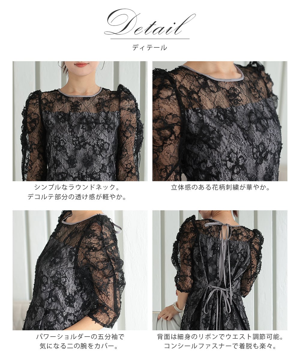 結婚式 ドレス パーティードレス オケージョンドレス レース ワンピース レディース 秋 オケージョン 体型隠し 結婚式ドレス お呼ばれ 五分袖 七分袖 総レース パワーショルダー 大人可愛い ミモレ丈 S M 324254 | AUNI_BELLES