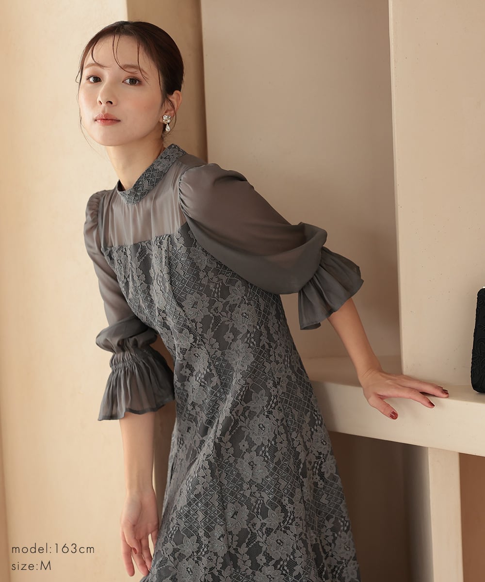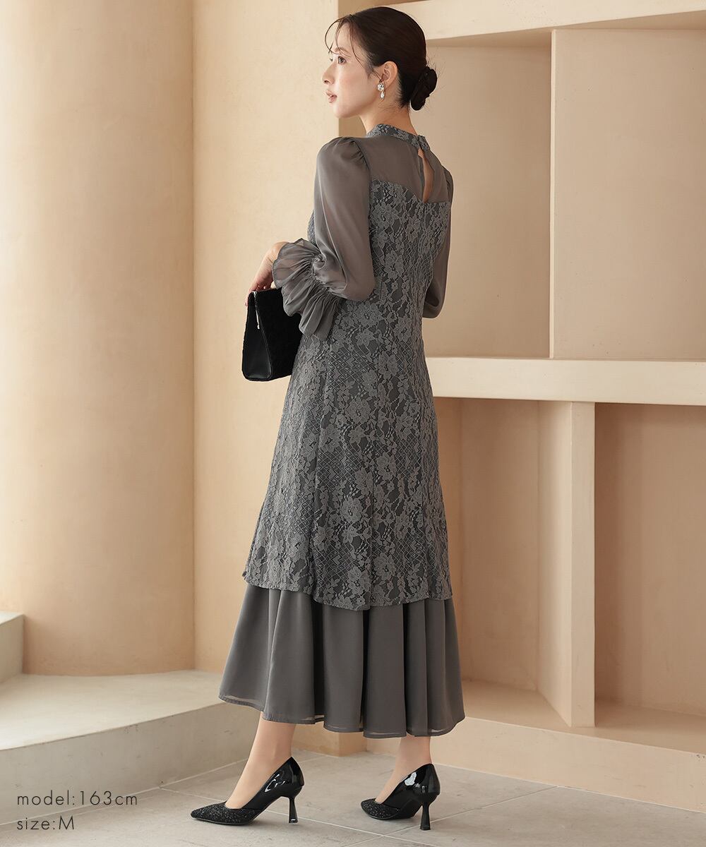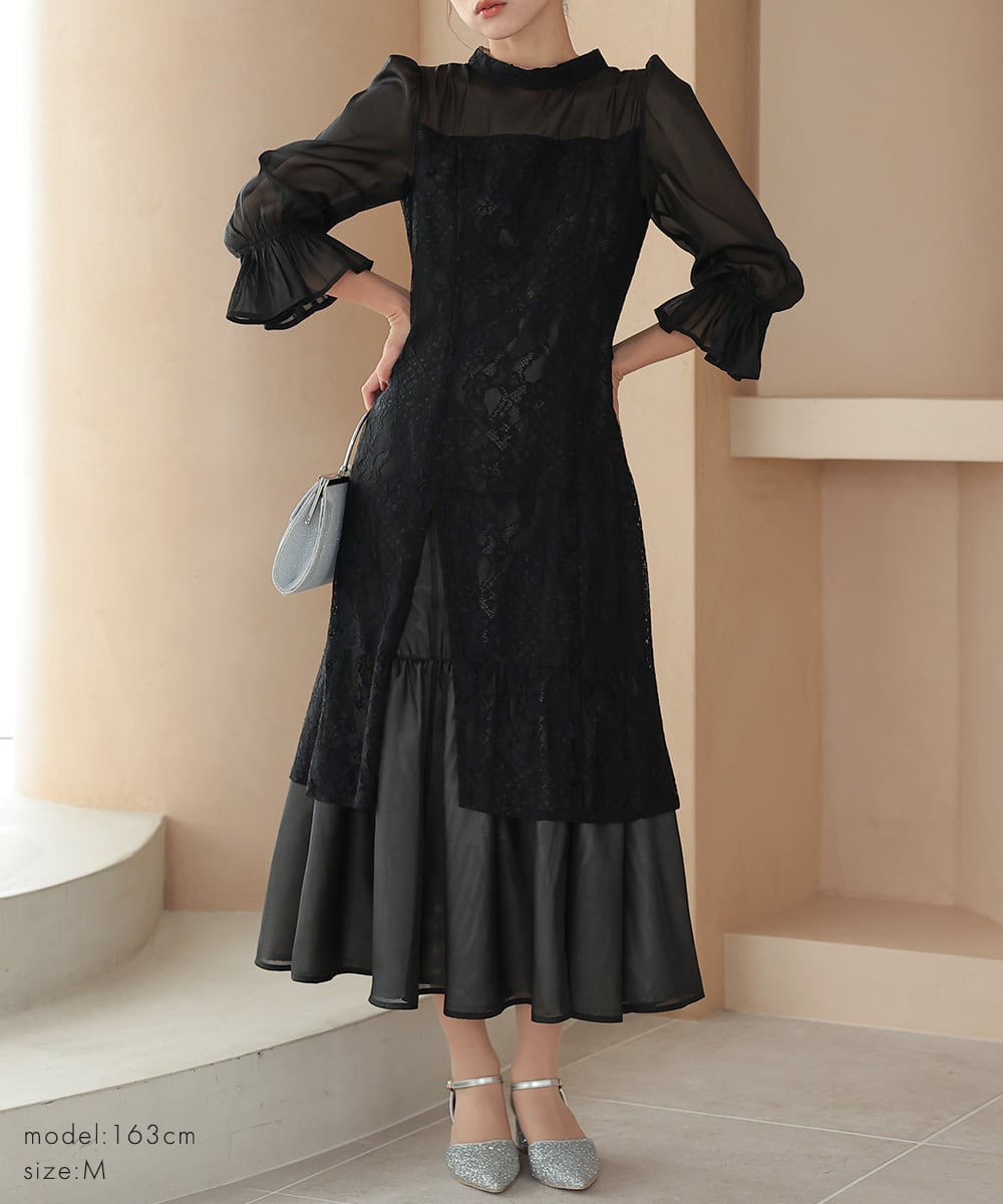 レース素材とオーガンジー素材の2種類を使用したドレス。
