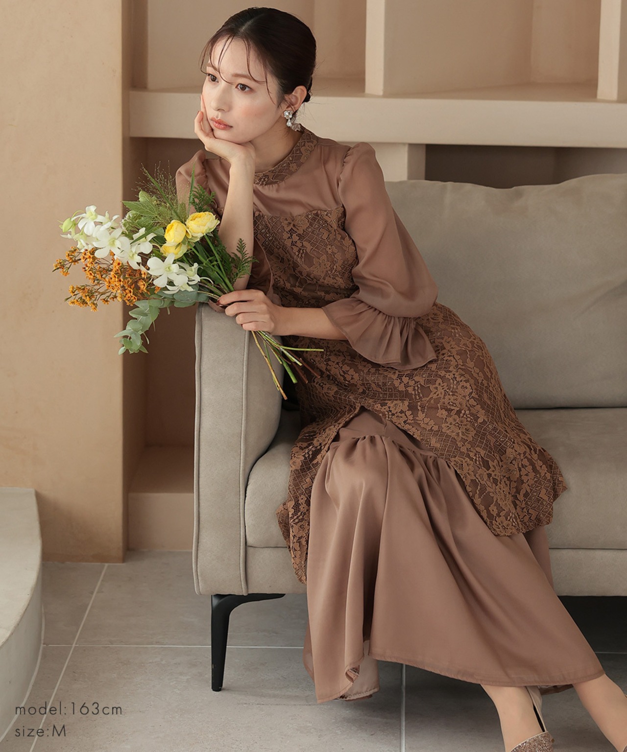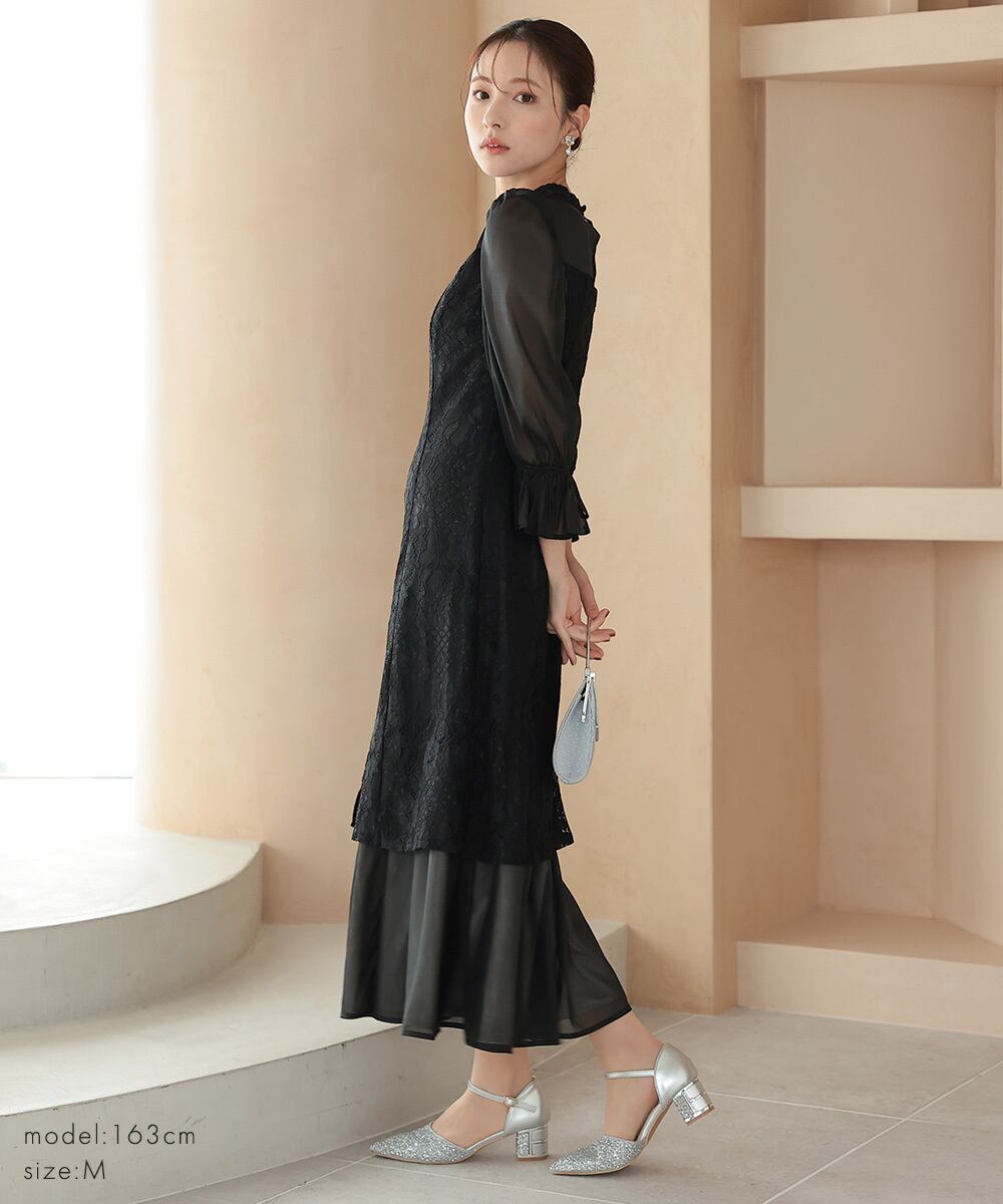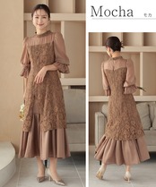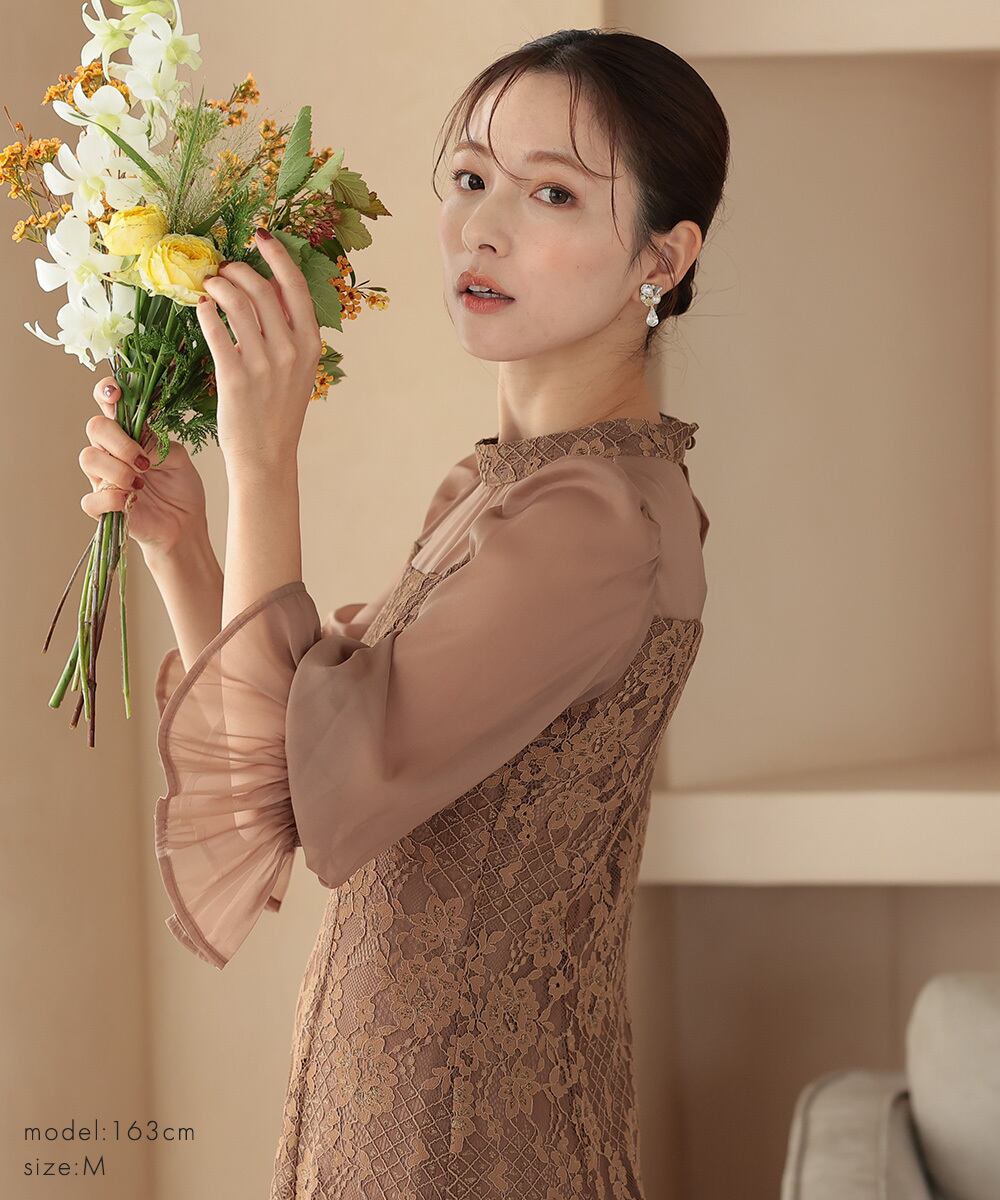 レース素材とオーガンジー素材の2種類を使用したドレス。