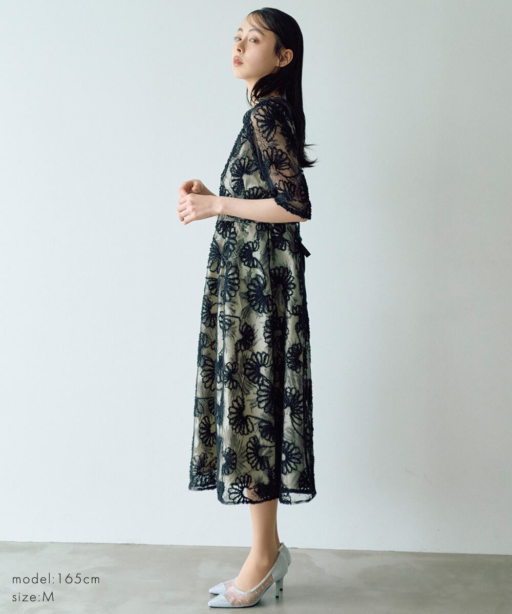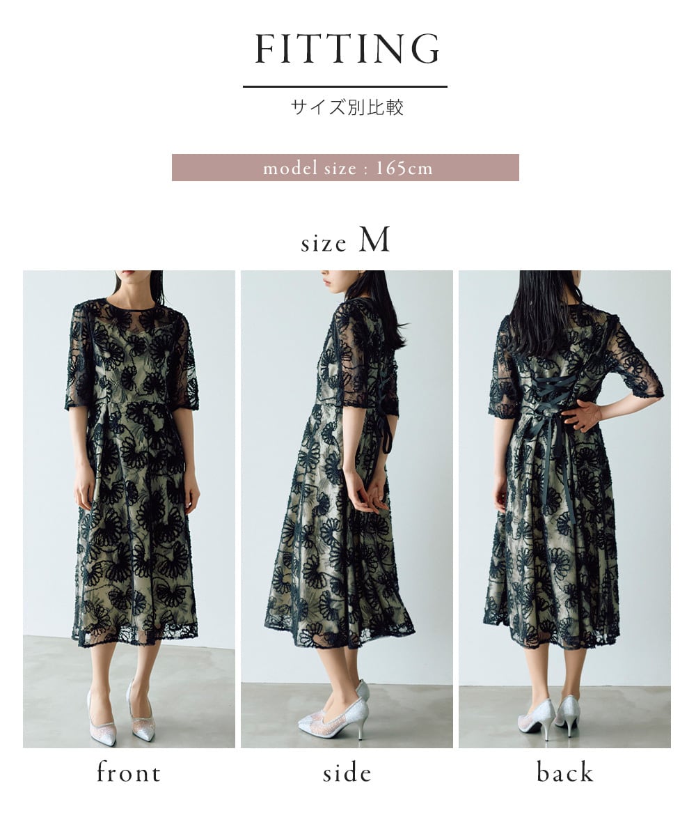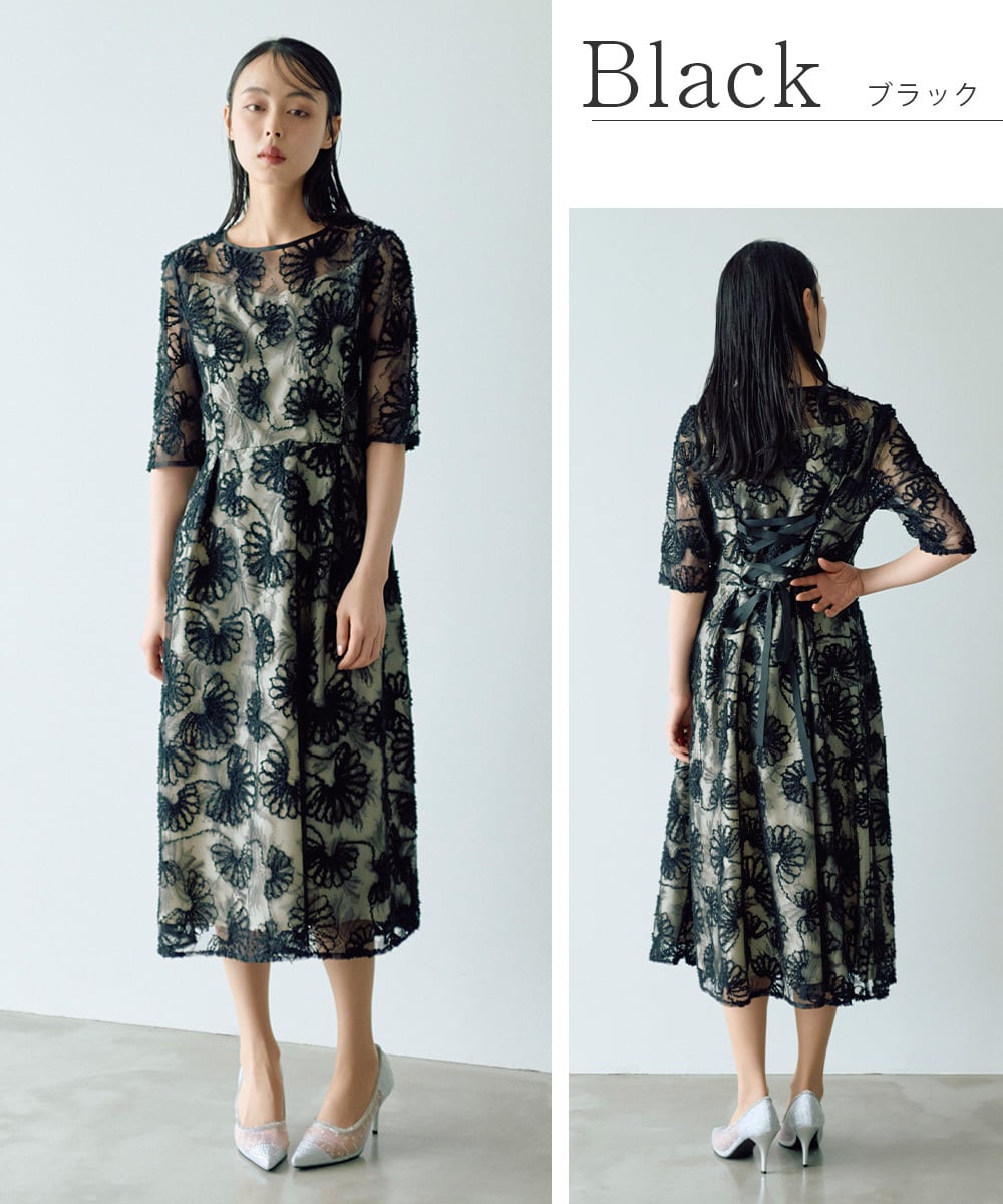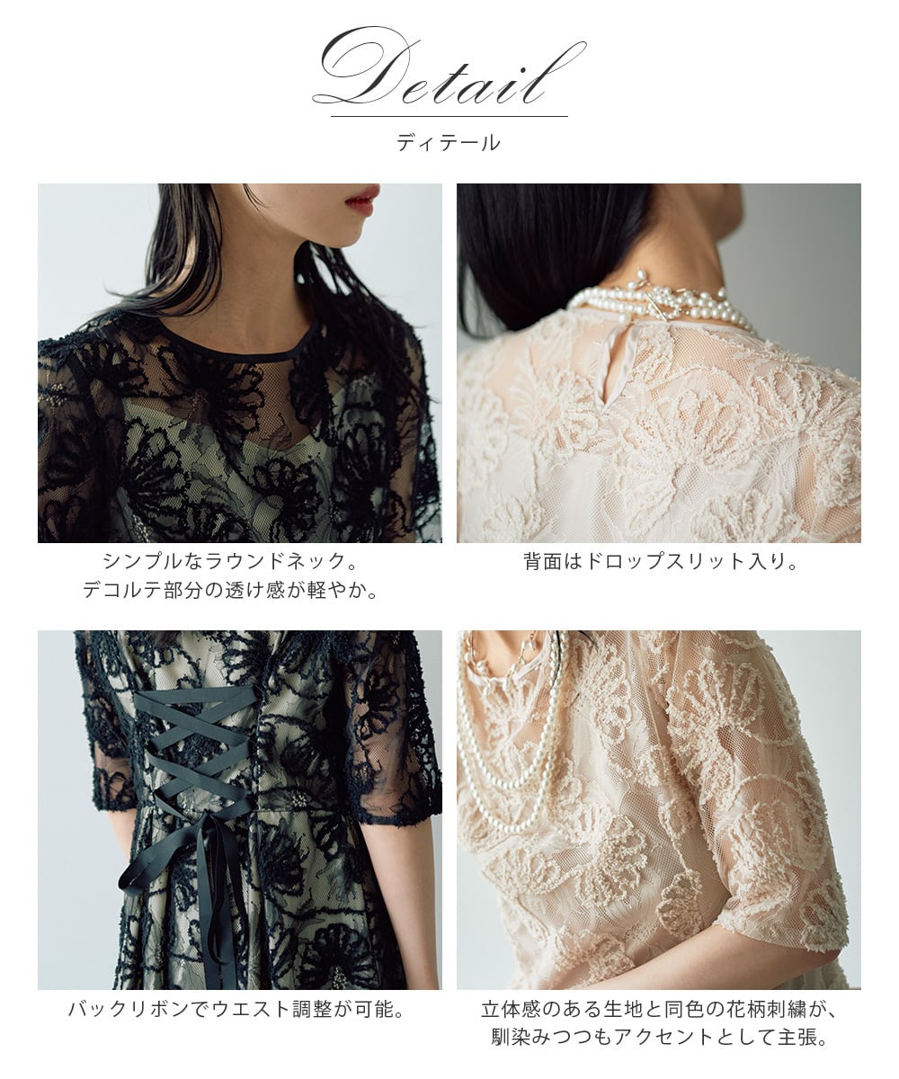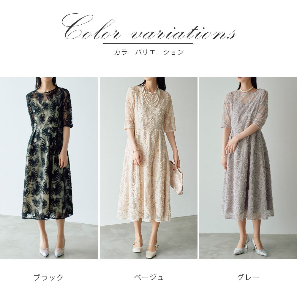 結婚式 ドレス パーティードレス オケージョンドレス ワンピース レース レディース 秋 オケージョン 体型隠し 結婚式ドレス お呼ばれ 五分袖 半袖 刺繍 総レース 大人可愛い ミモレ丈 S M 324252 | AUNI_BELLES
