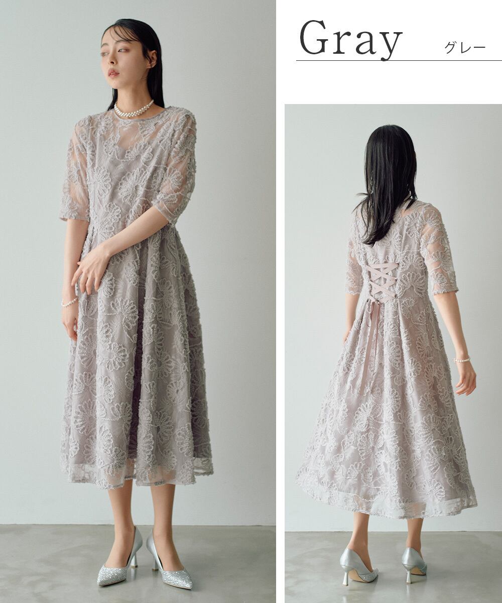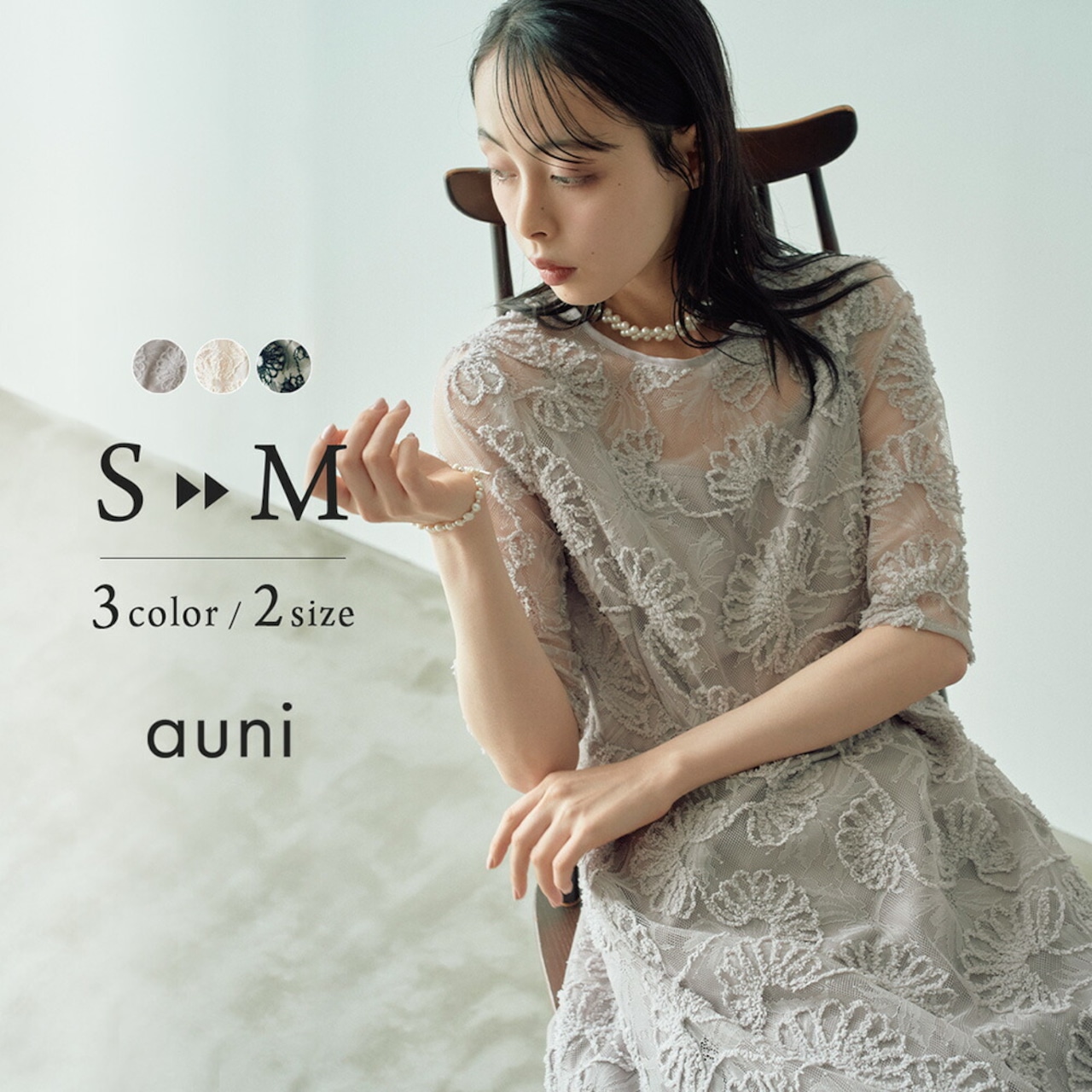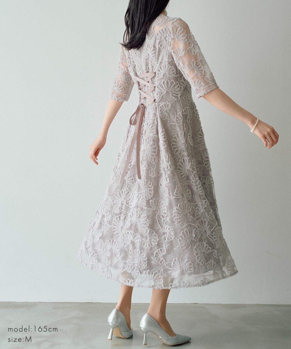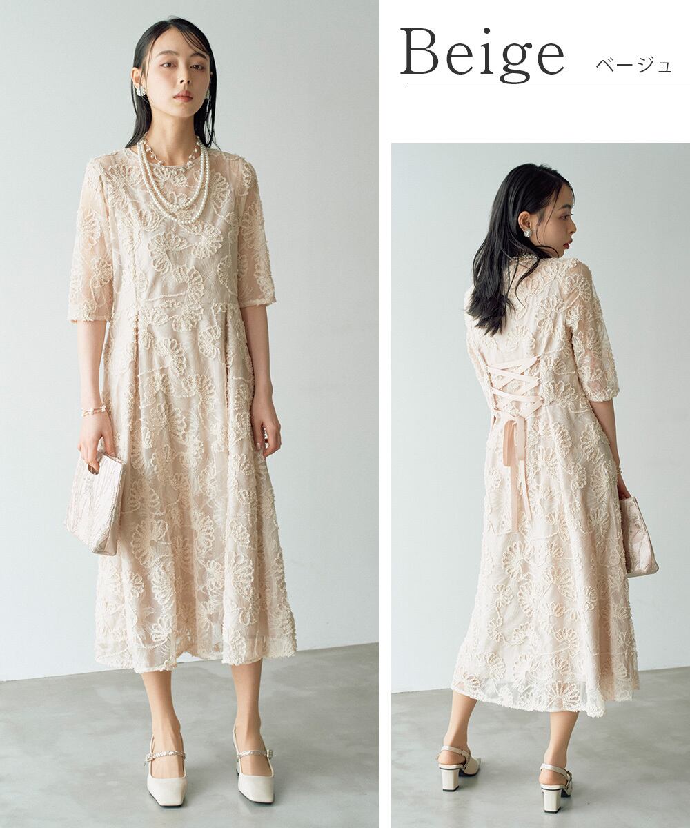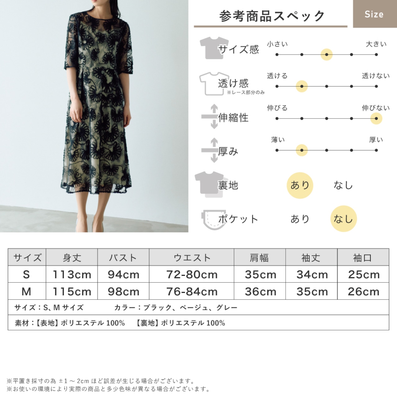 結婚式 ドレス パーティードレス オケージョンドレス ワンピース レース レディース 秋 オケージョン 体型隠し 結婚式ドレス お呼ばれ 五分袖 半袖 刺繍 総レース 大人可愛い ミモレ丈 S M 324252 | AUNI_BELLES
