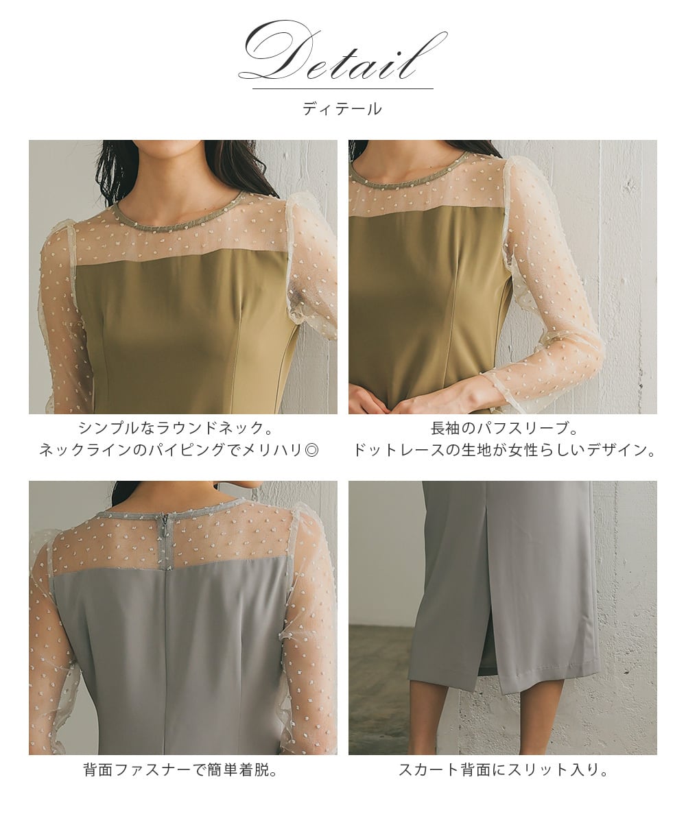 首元にはドレスと同生地のパイピングを施し統一感のあるデザインを楽しむことができます。