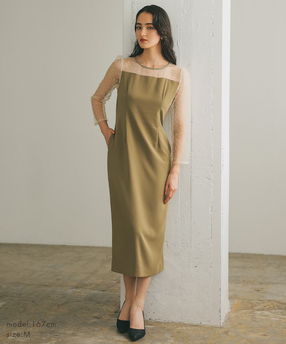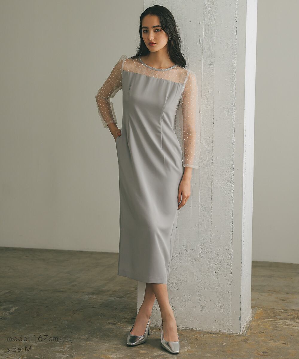 変幻自在なオーガンジーケープで好きな形を楽しむドレス。
