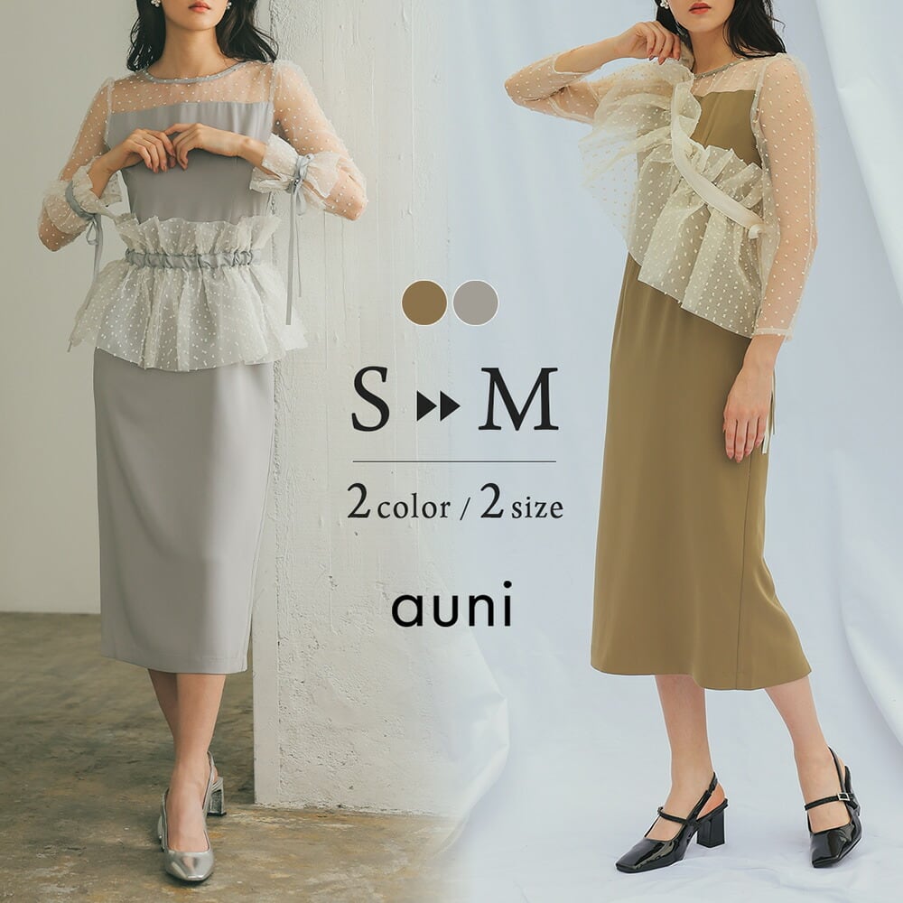 結婚式 ドレス パーティードレス オケージョンドレス ワンピース レディース 秋 オケージョン 体型隠し 結婚式ドレス お呼ばれ ケープ オーガンジー 着回し フリル ロング 大人可愛い ミモレ丈 S M 324231 | AUNI_BELLES