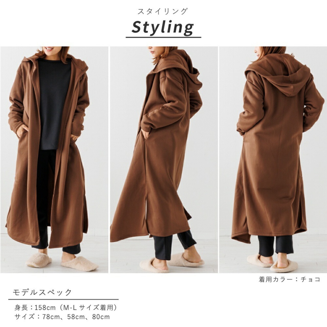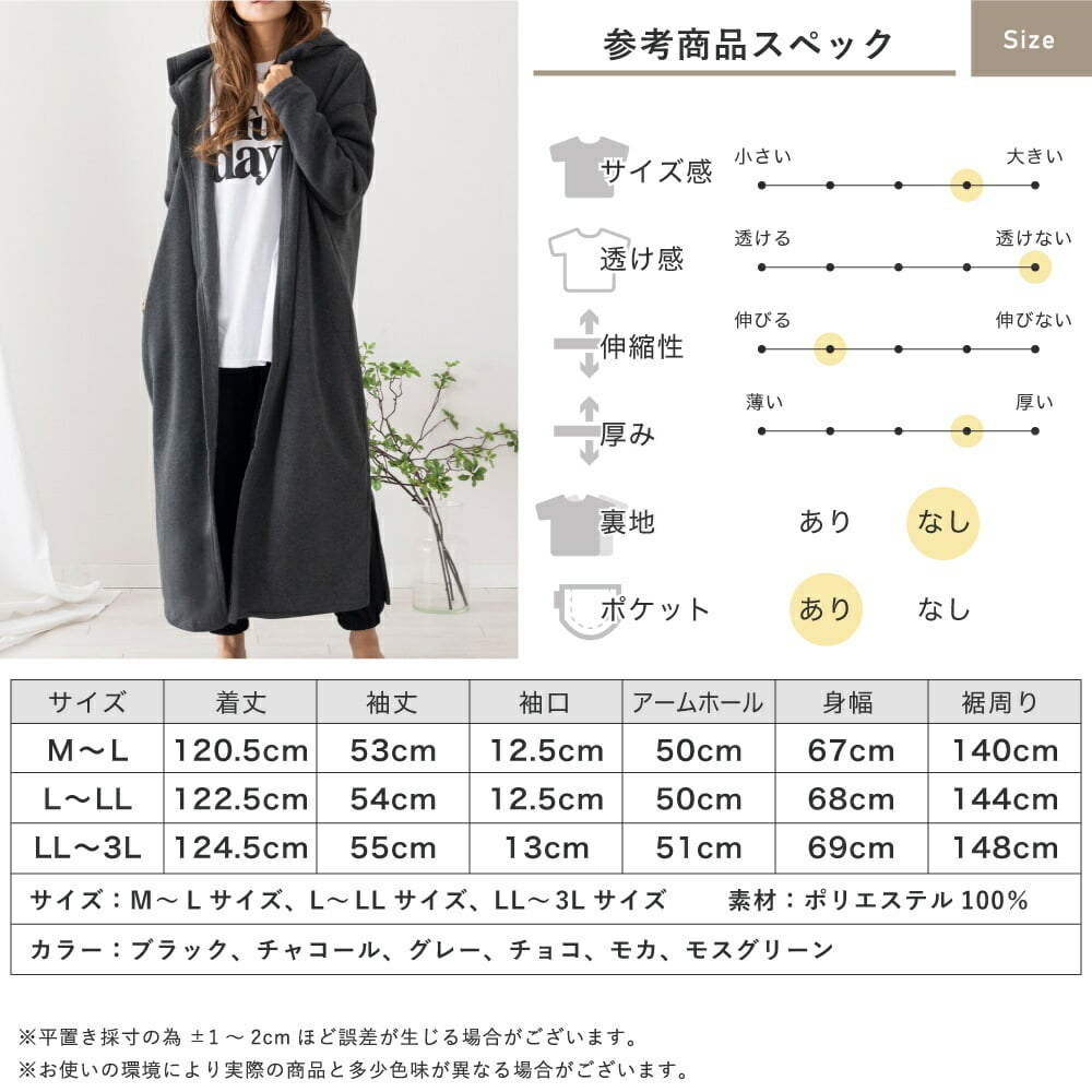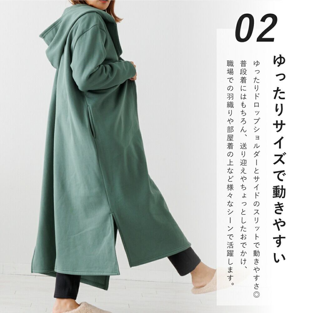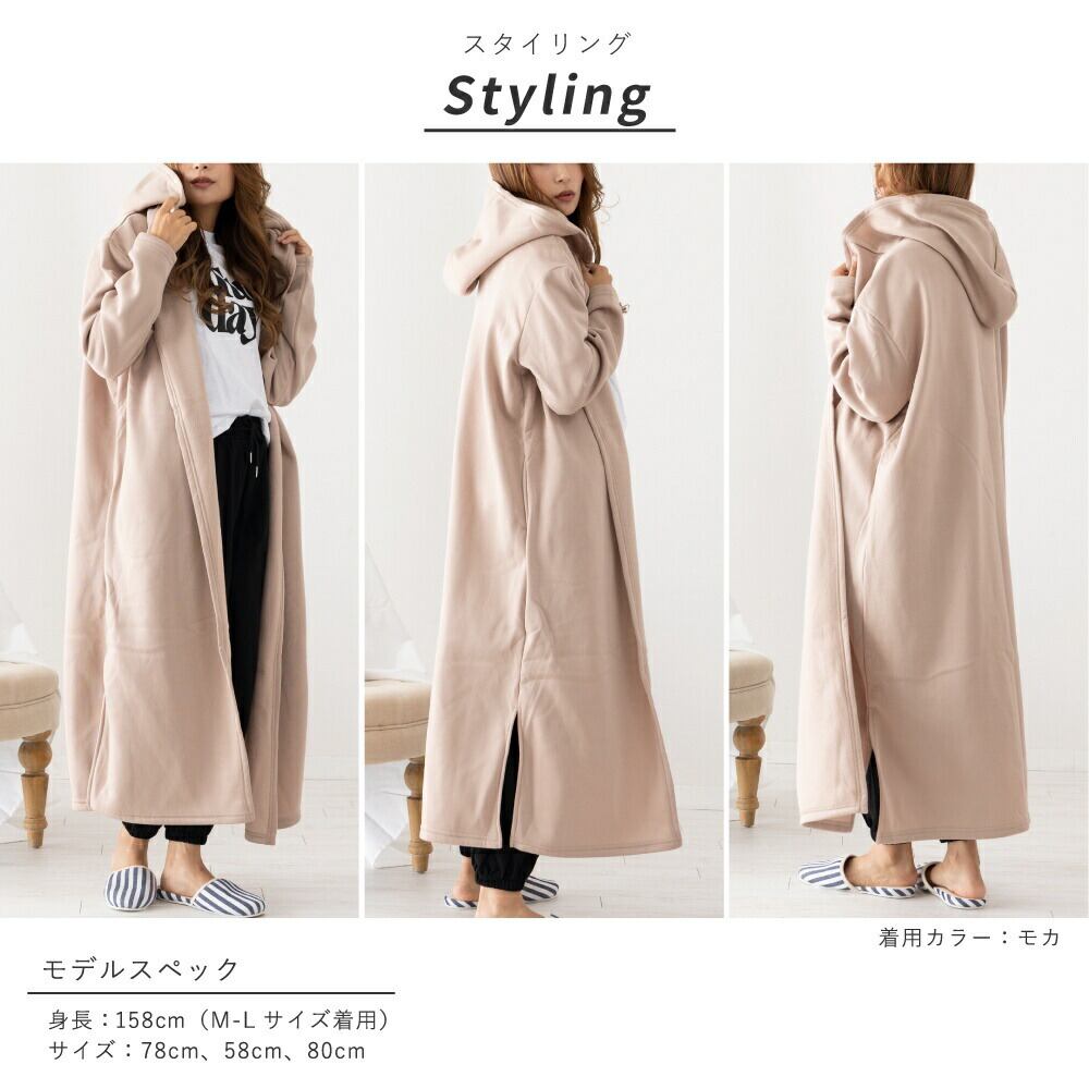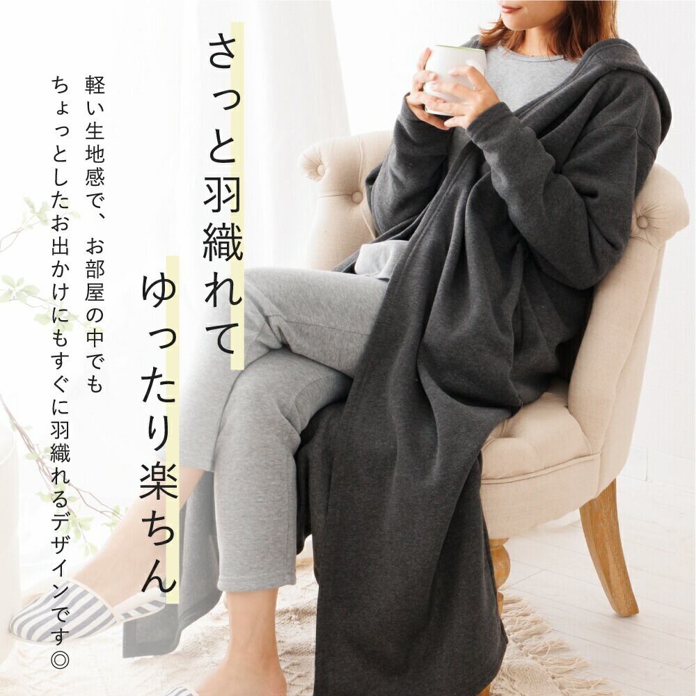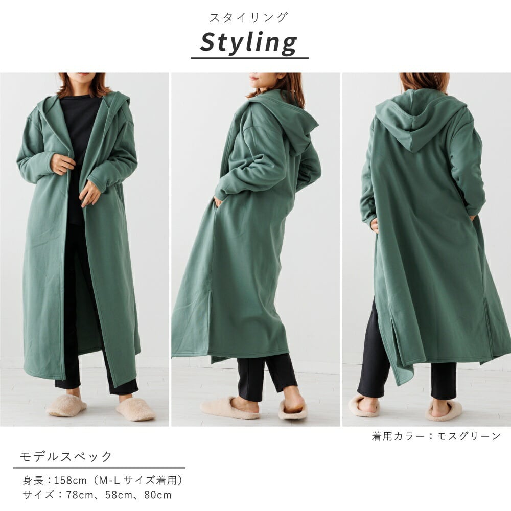家でゆったり過ごす時間も大切。リラックスタイムにぴったりのアウター。普段着やルームウェア・マタニティなど様々なシーンで大活躍。