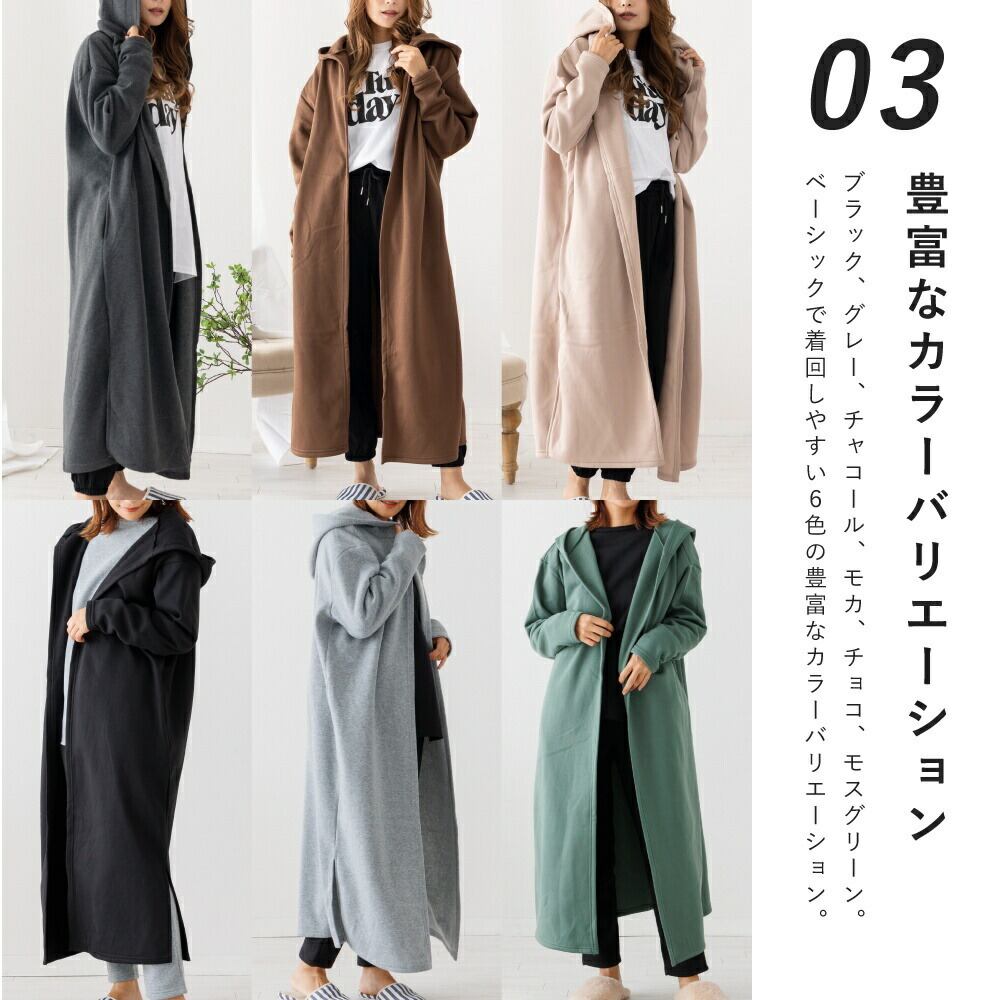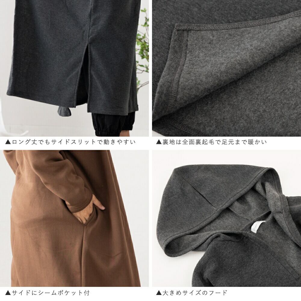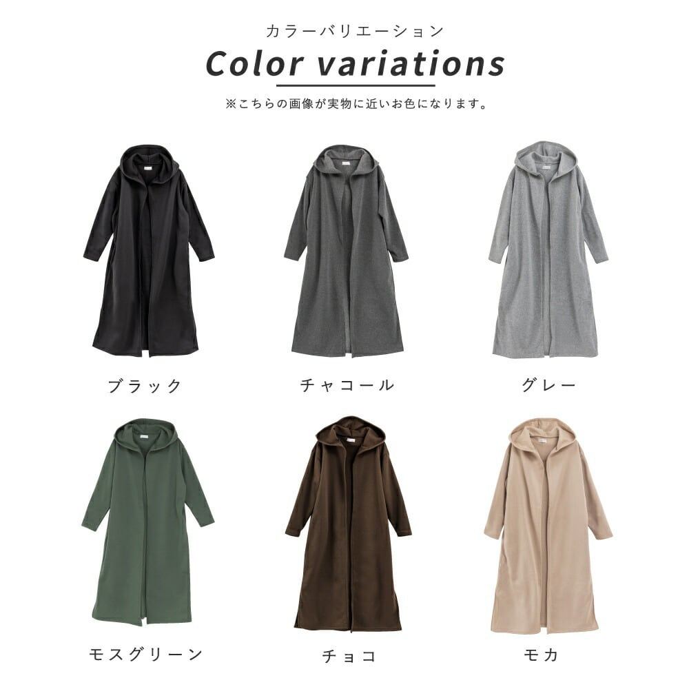 裏起毛 カーディガン ルームウェア レディース 冬 アウター パジャマ ワンマイル 秋 冬 可愛い 長袖 羽織 黒 コート あったか 部屋着 暖かい マキシ丈 スリット 大きいサイズ フード付き 無地 ロング ゆったり ペア hw8315 | AUNI_BELLES