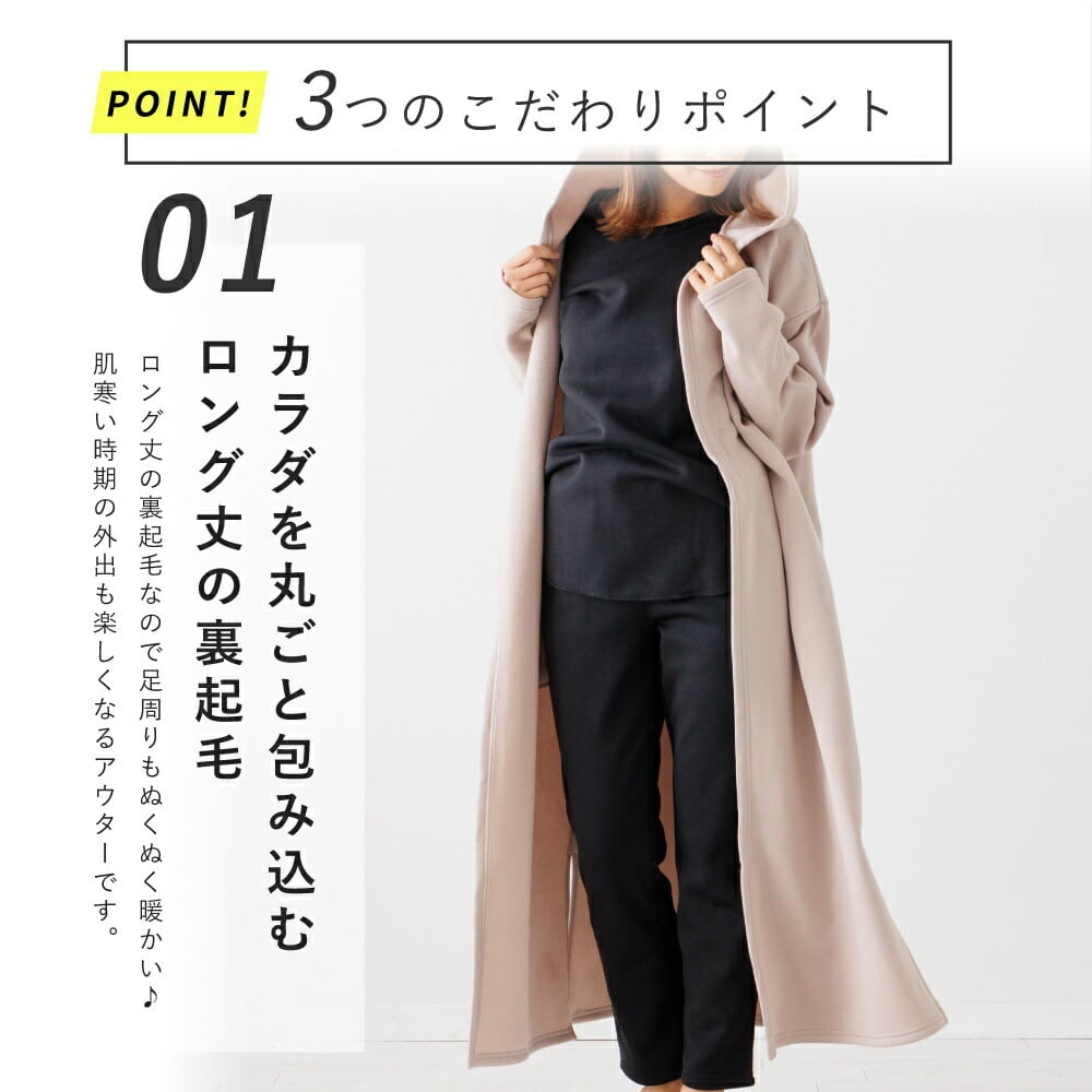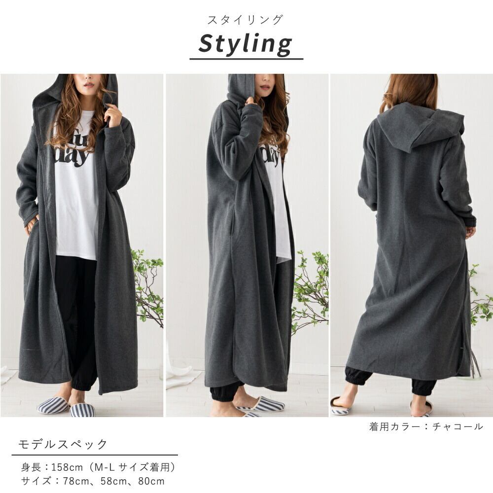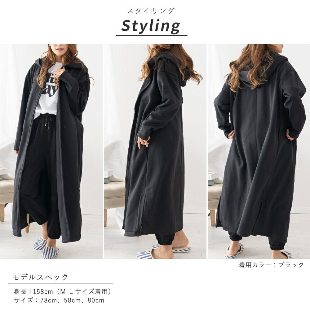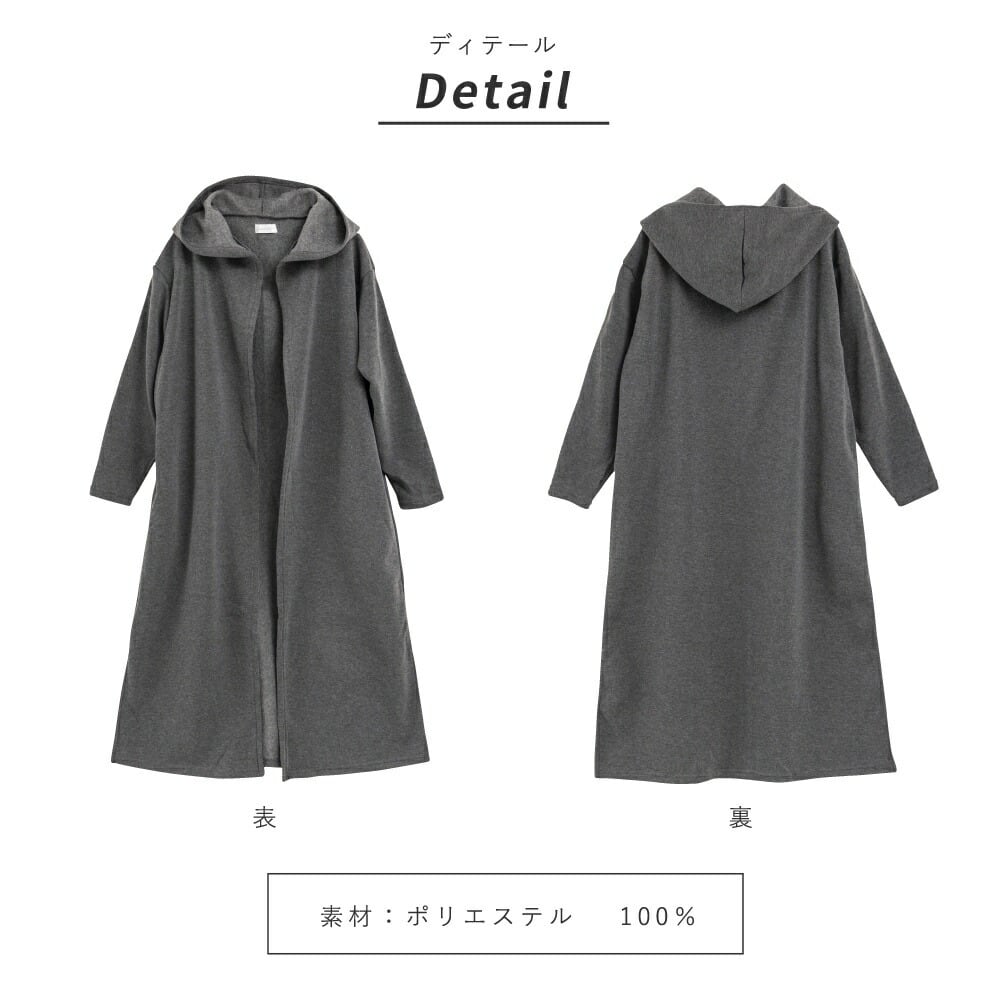 裏起毛 カーディガン ルームウェア レディース 冬 アウター パジャマ ワンマイル 秋 冬 可愛い 長袖 羽織 黒 コート あったか 部屋着 暖かい マキシ丈 スリット 大きいサイズ フード付き 無地 ロング ゆったり ペア hw8315 | AUNI_BELLES
