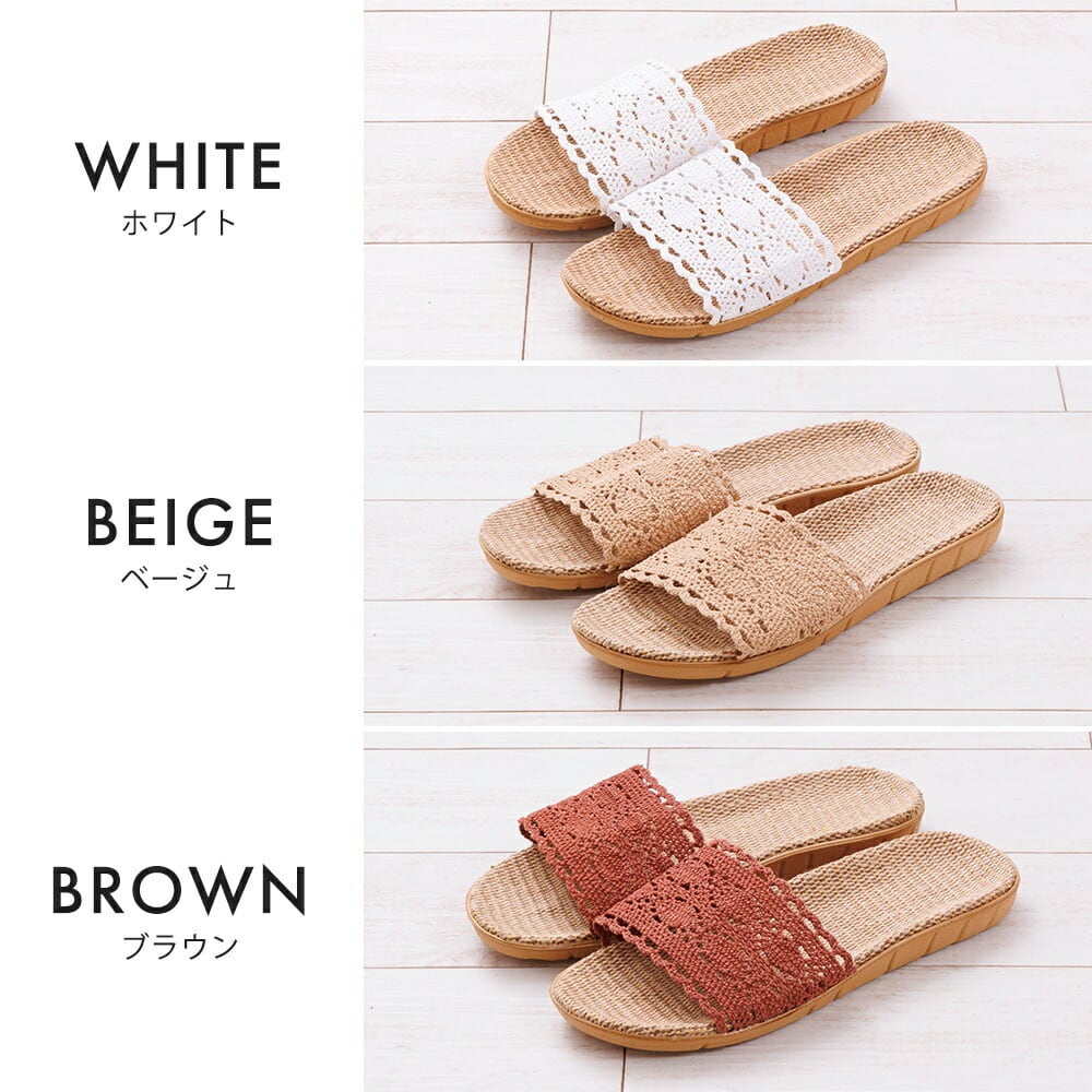 スリッパ 夏用 室内 ルームシューズ おしゃれ 来客用 洗える 麻 ベランダ ルームサンダル かわいい レース風 涼しい 蒸れない 滑りにくい 軽量 男女兼用 auni hw769 | AUNI_BELLES