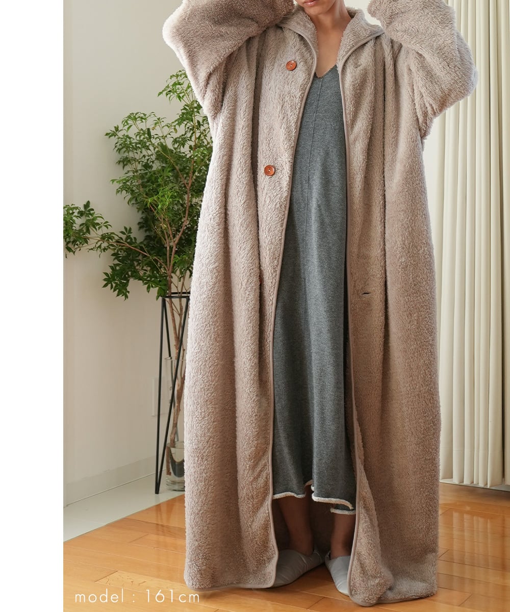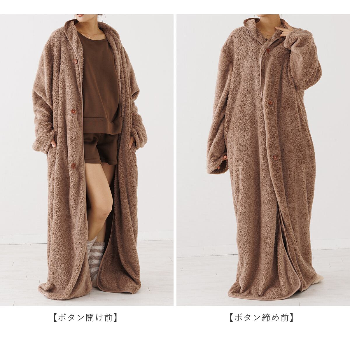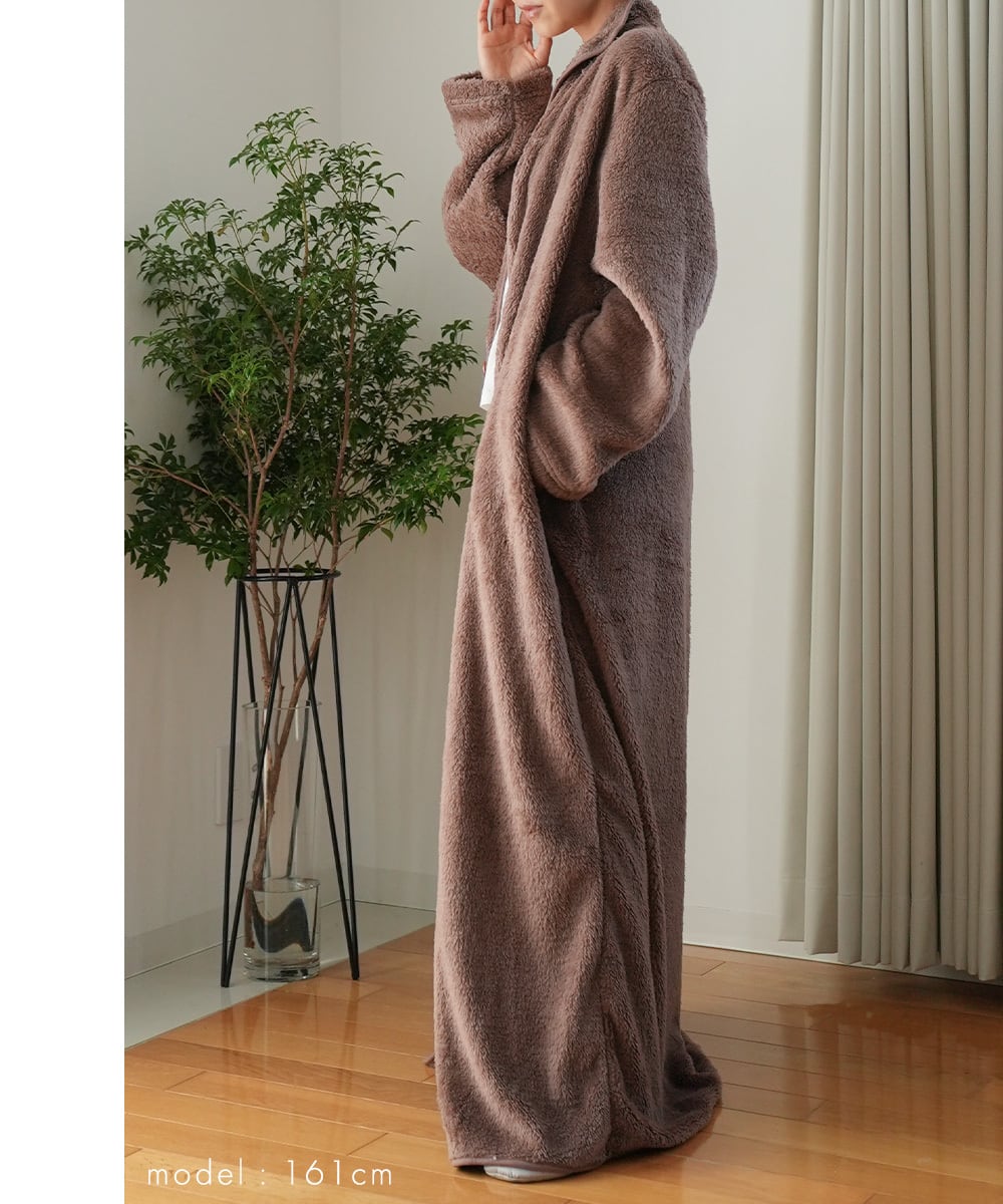 ルームウェア レディース 冬 カーディガン ガウン もこもこ 秋 可愛い 長袖 羽織 黒 ふわふわ フリース 秋冬 厚手 部屋着 暖かい ロング丈 着る毛布 ドロップショルダー 無地 ワンピース ロング ゆったり ペア グレー ブラウン hw8198 | AUNI_BELLES