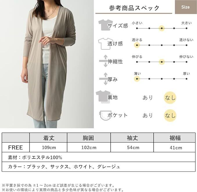 春夏の羽織りにぴったりなカジュアルなUVカットロング丈 カーディガン。 透け感にこだわった生地で軽い素材なのでサッと羽織れて着心地抜群。冷房対策にもおすすめ。 程良く抜け感のある雰囲気で、羽織るだけで女性らしい印象に。
