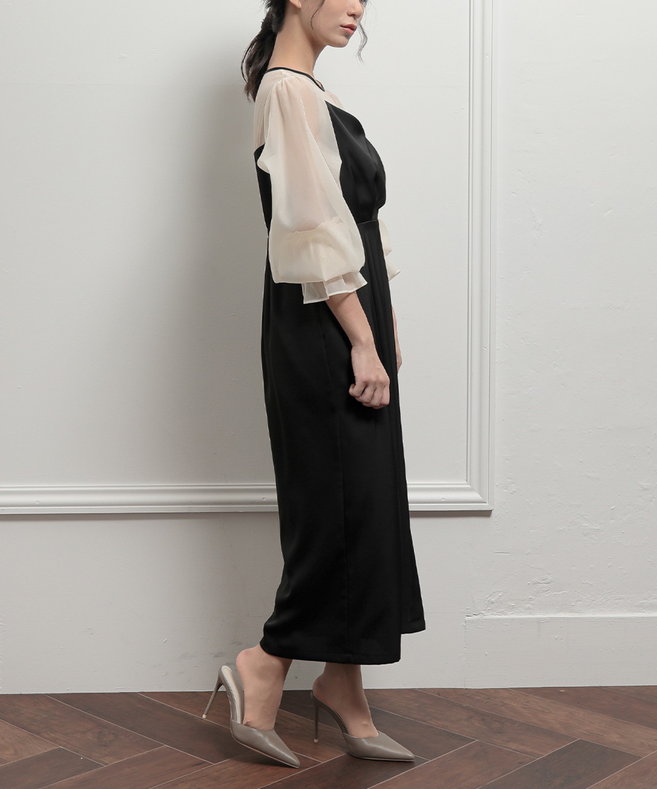 パーティードレス 結婚式 ワンピース ドレス 袖あり ロング ビスチェ風 オケージョンドレス ボリューム袖 体型カバー パーティー お呼ばれ 大人 おしゃれ 二次会 披露宴 成人式 フォーマルドレス 黒 ベージュ epic day grv300032 | AUNI_BELLES